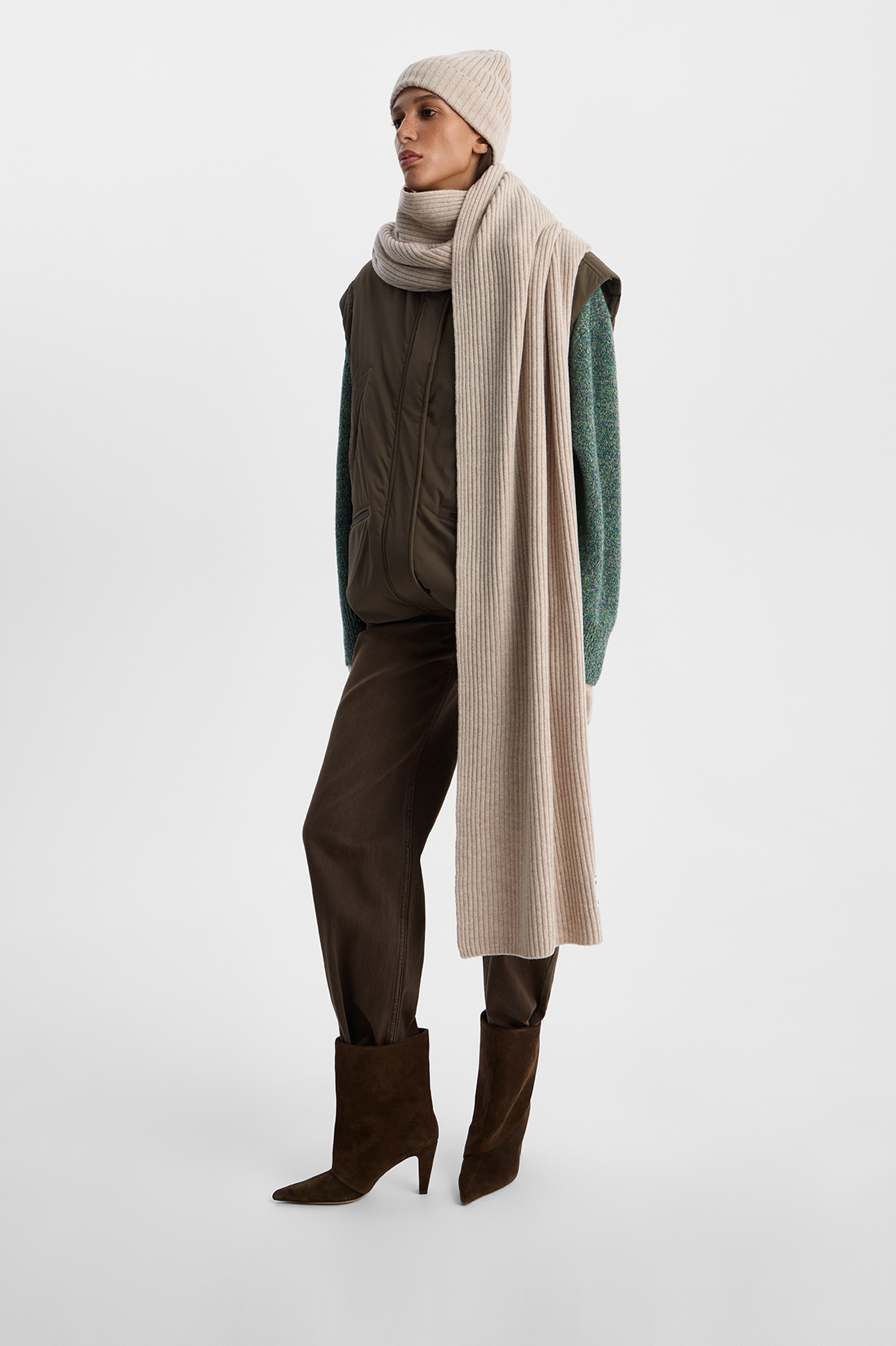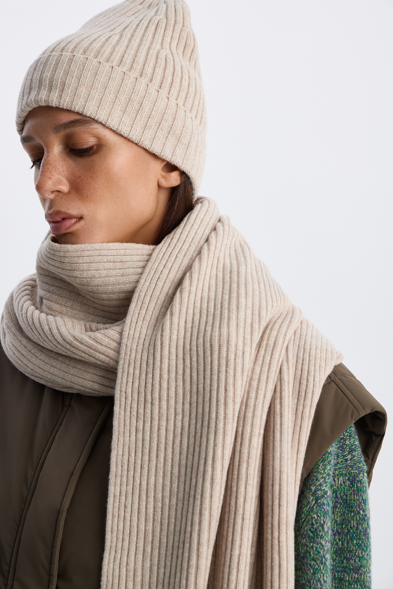 Шарф из шерсти мериноса бежевого цвета