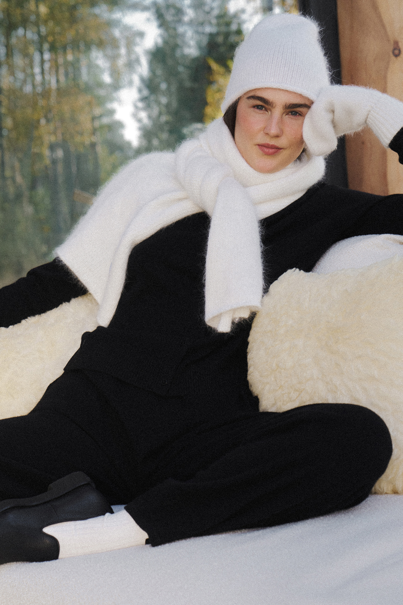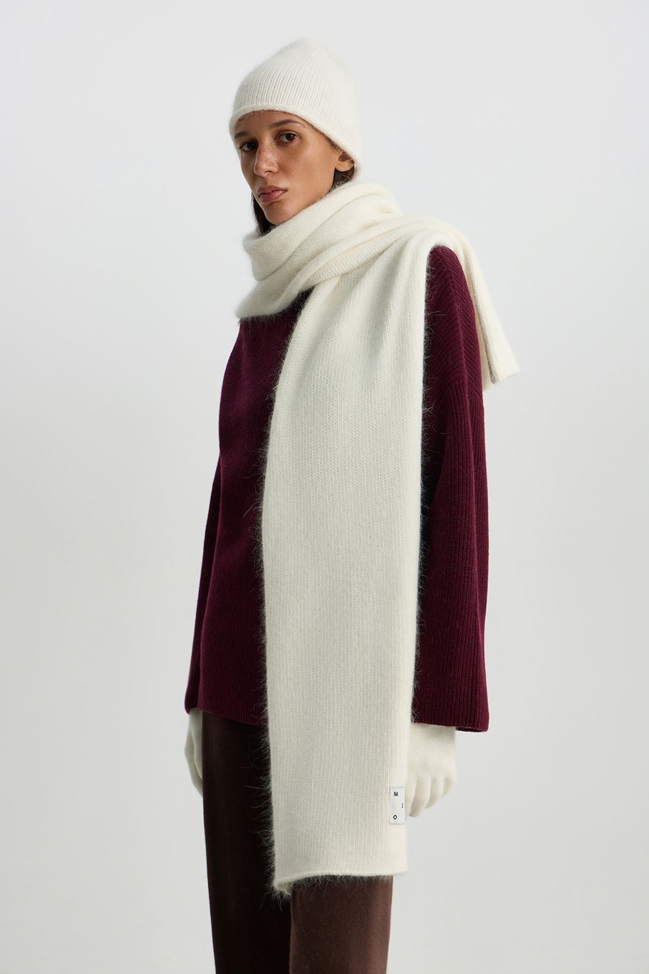 Шарф из ангорской шерсти молочного цвета