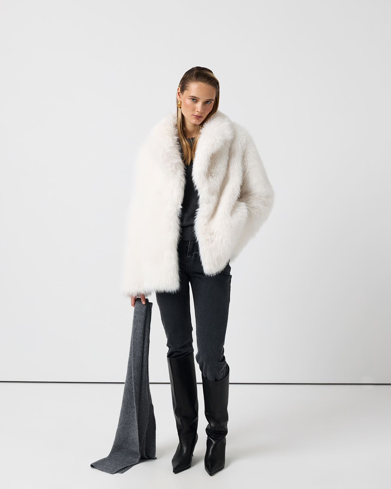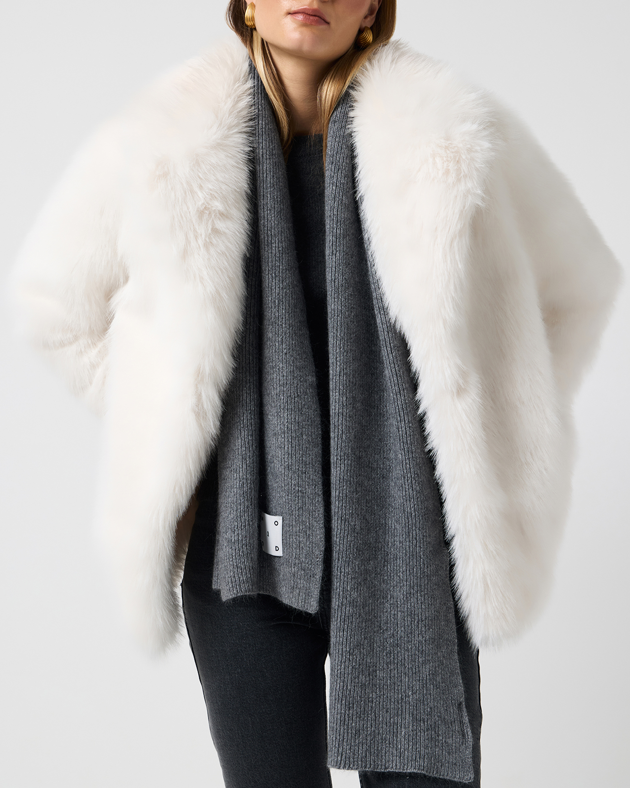 Шарф с шерстью енота темно-серого цвета