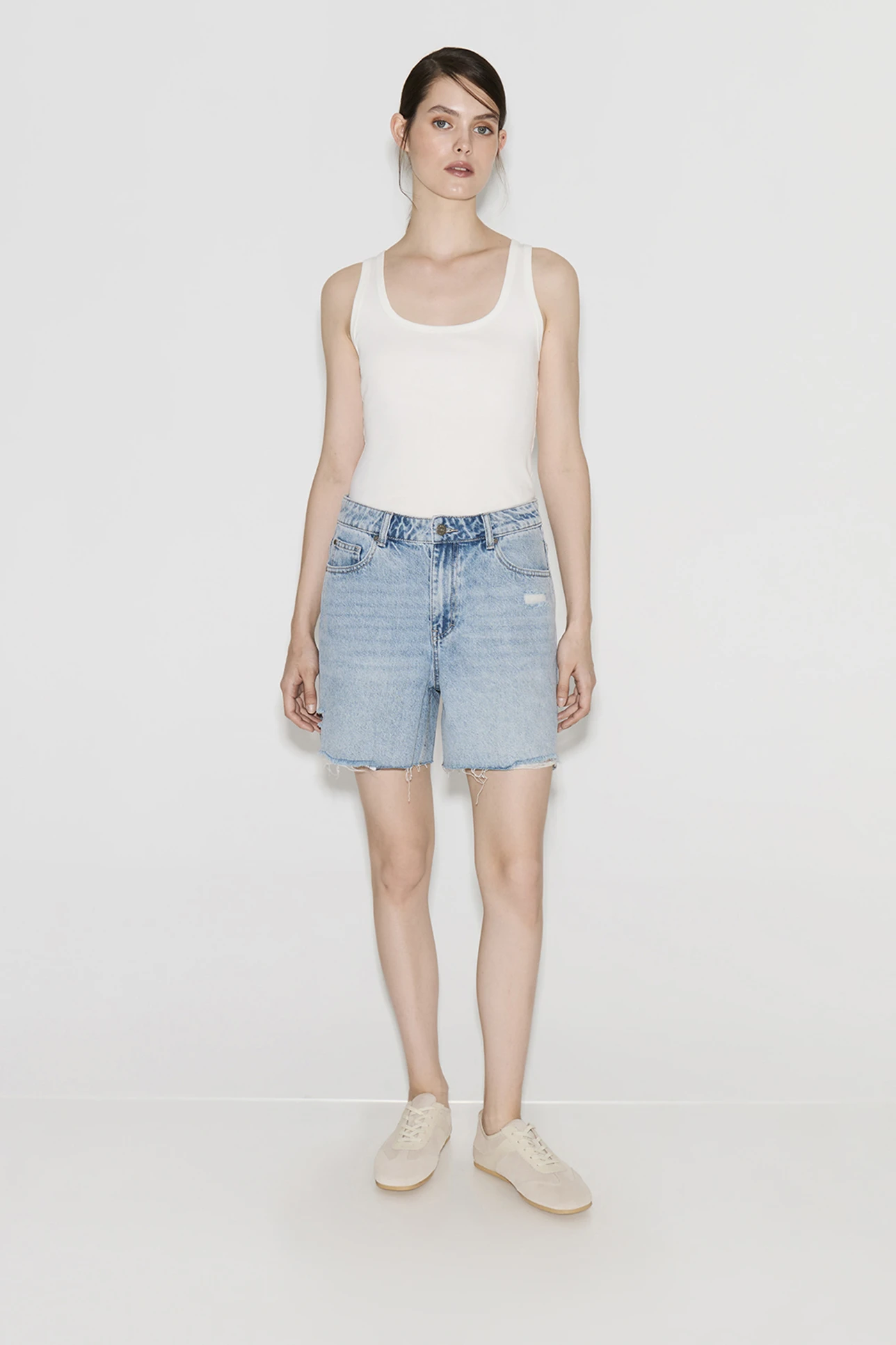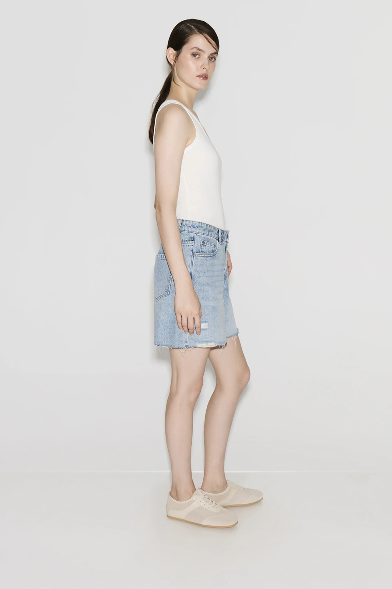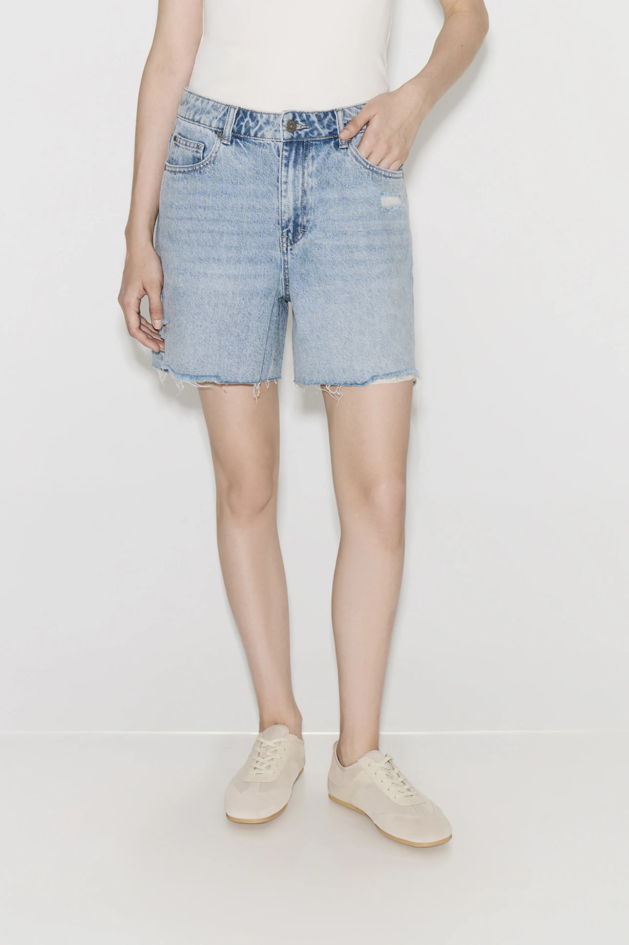 Шорты из денима с потертостями голубого цвета