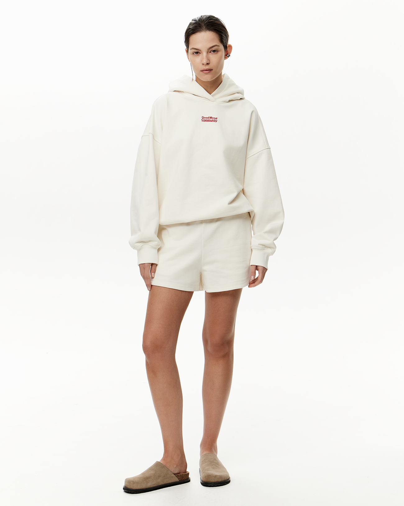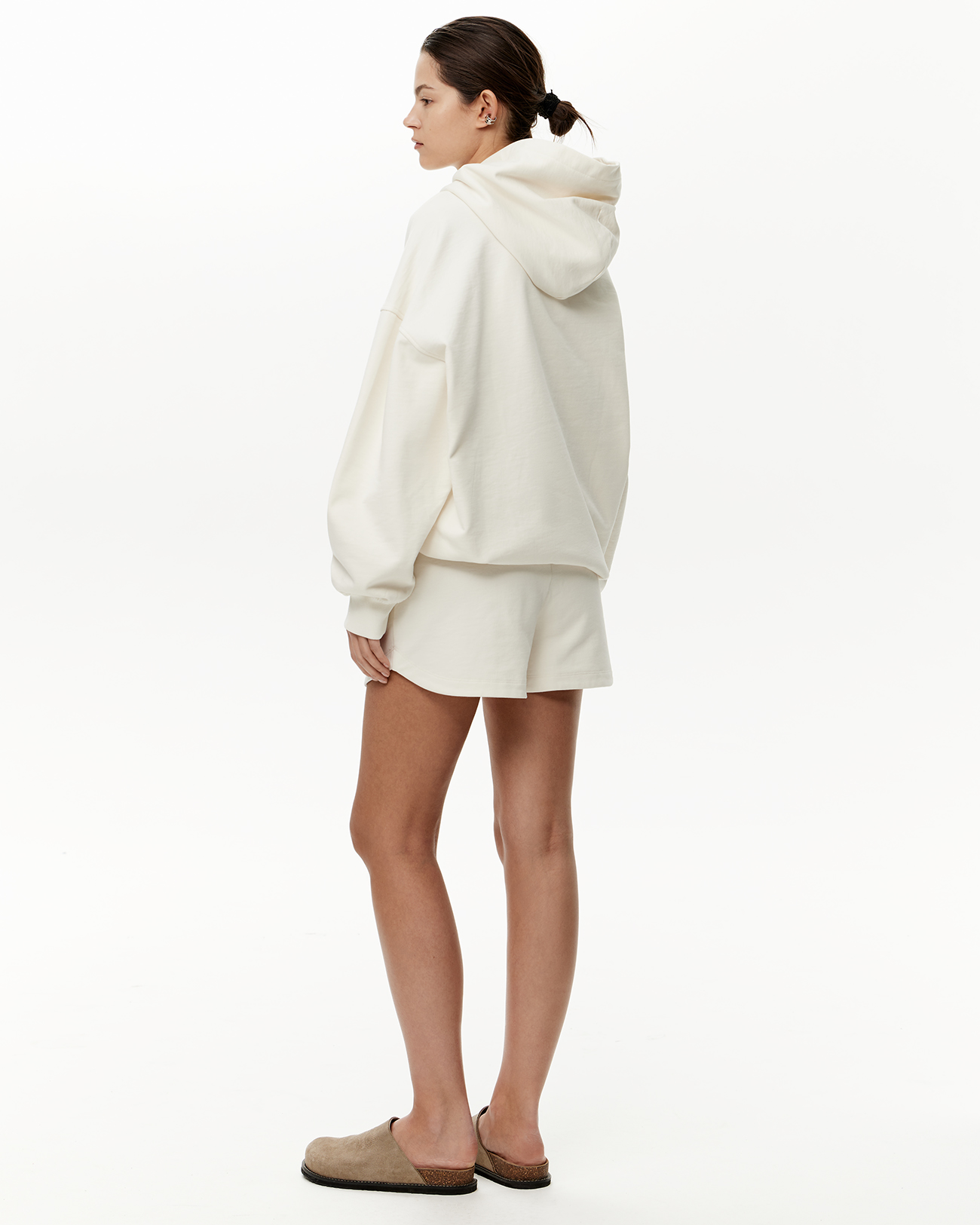 Шорты укороченные из футера молочного цвета