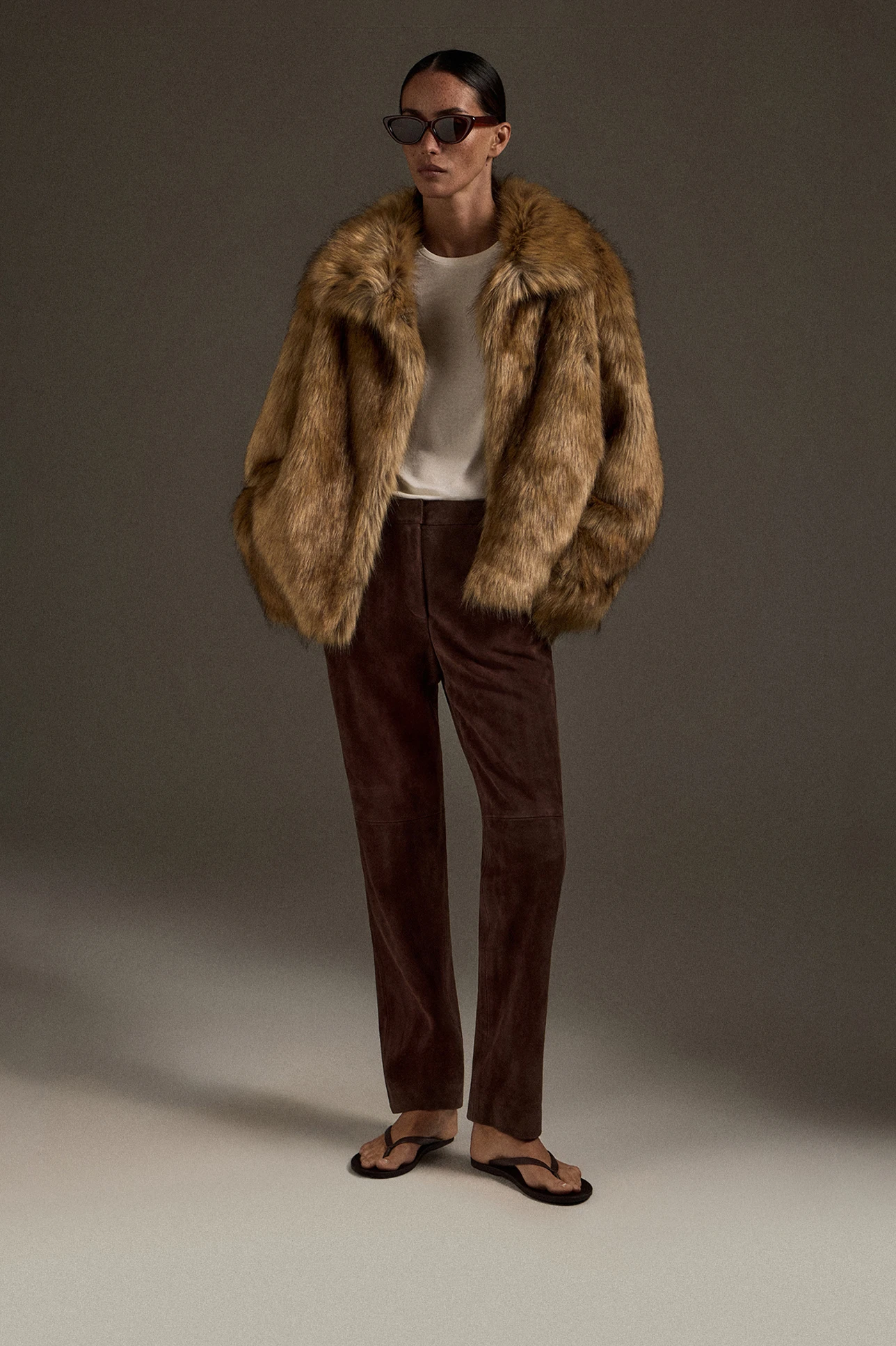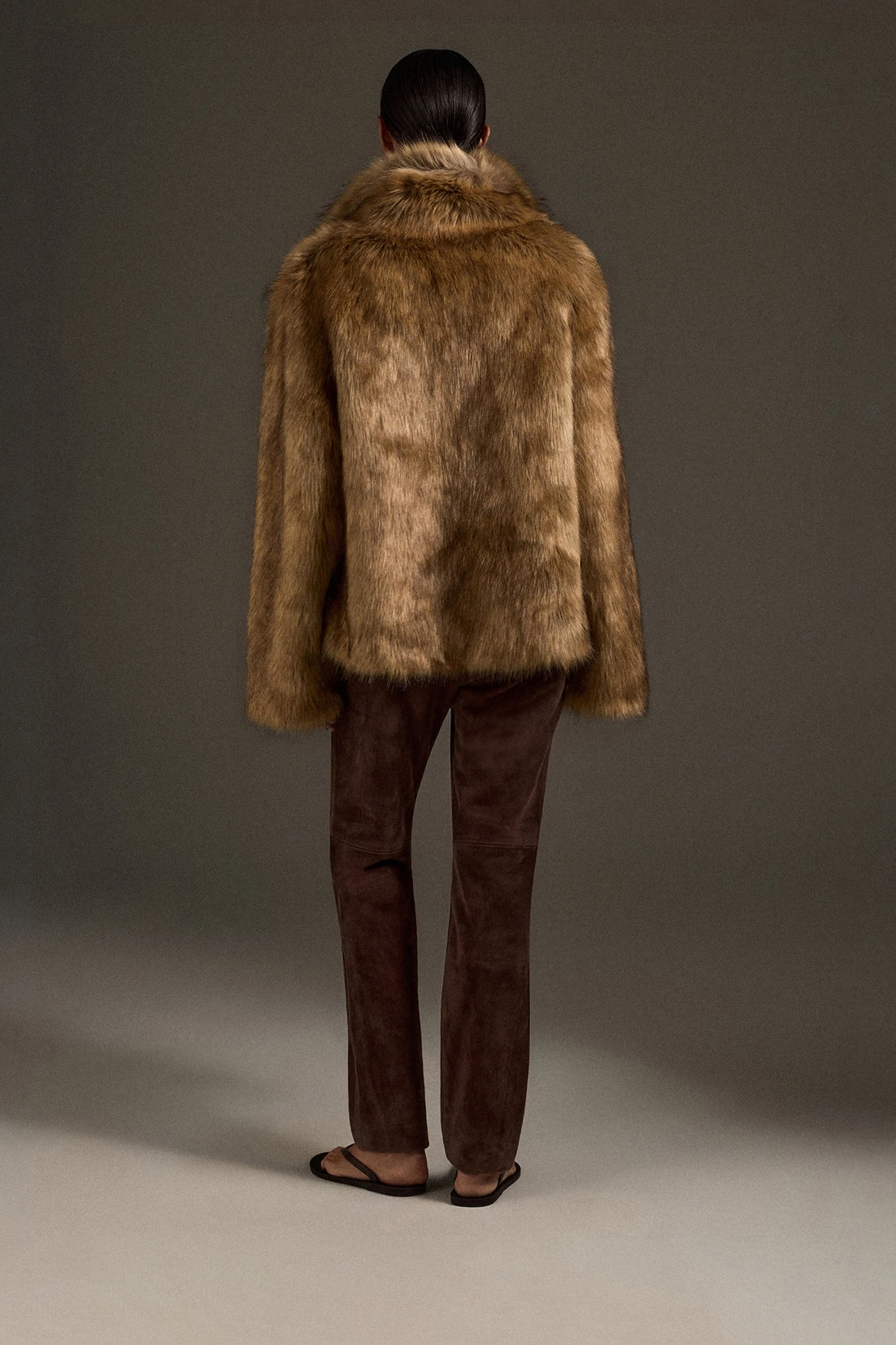 Шуба с имитацией меха лисы янтарного цвета