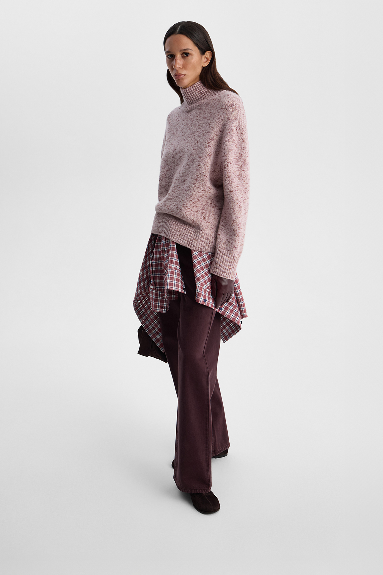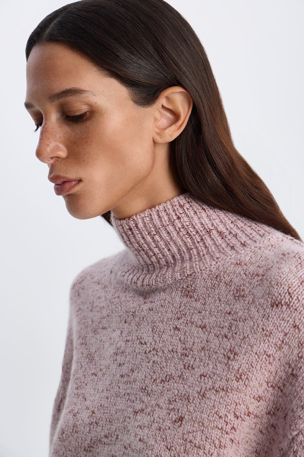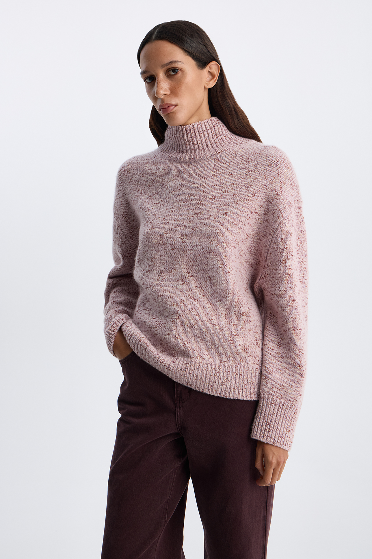 Свитер из меланжевой пряжи бледно-розового цвета