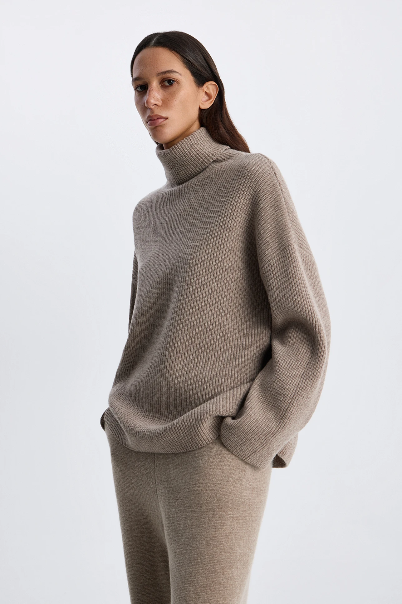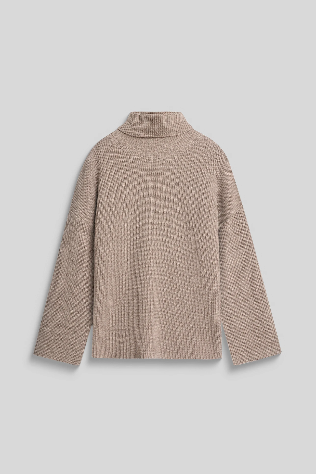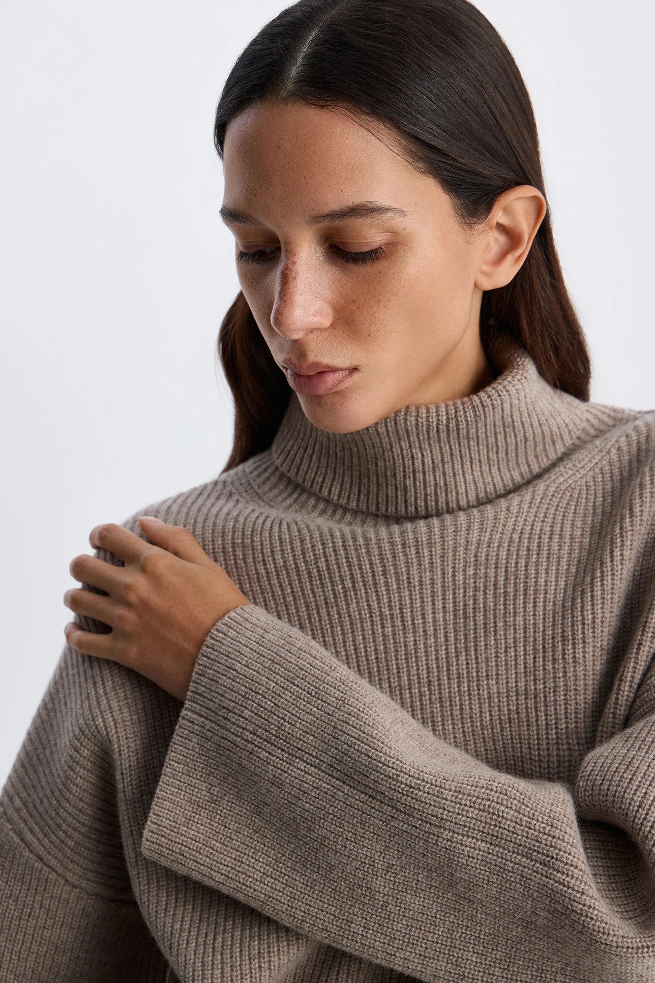 Свитер oversize с широким рукавом серо-бежевого цвета