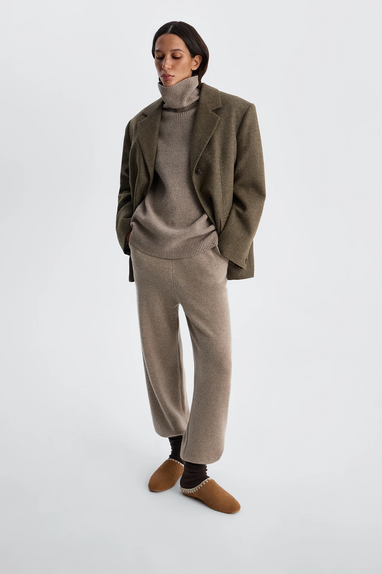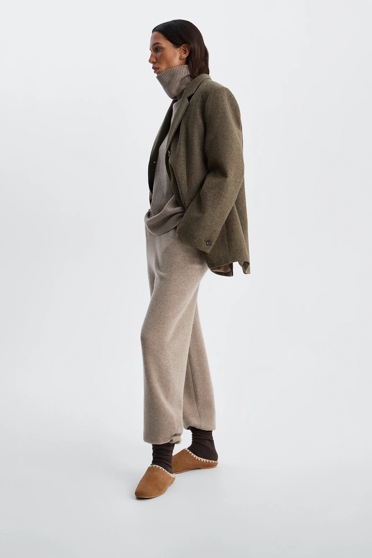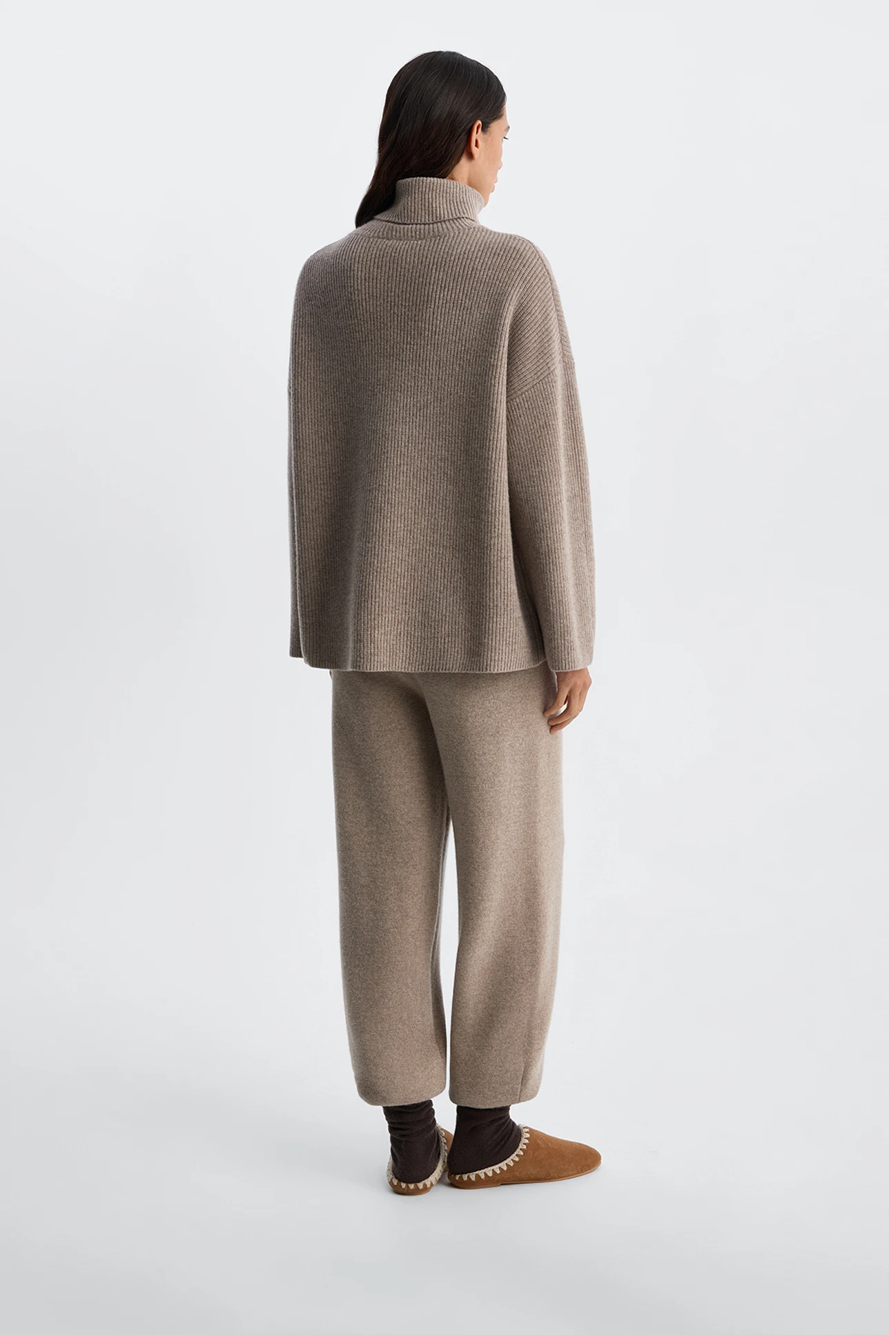 Свитер oversize с широким рукавом серо-бежевого цвета