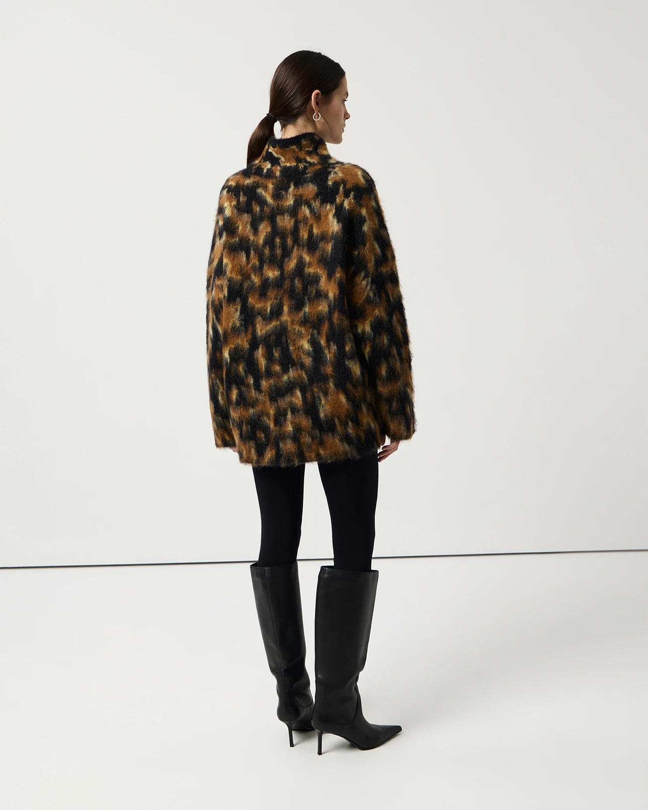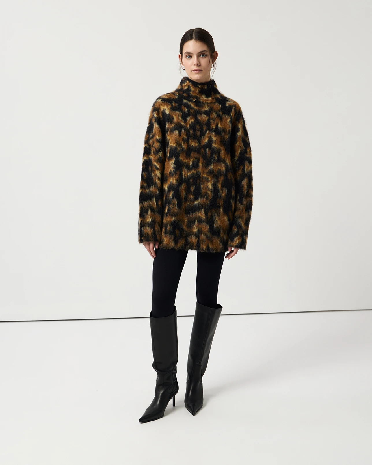 Свитер пушистый с абстрактным рисунком цвета кэмел