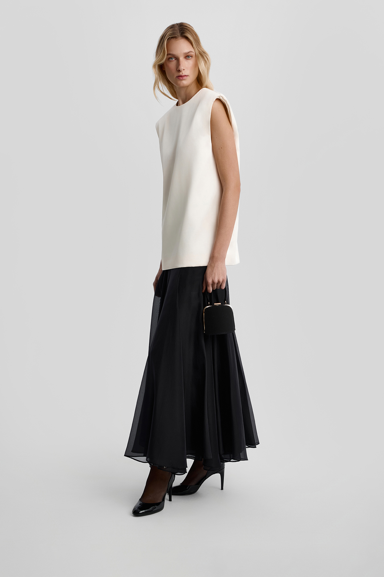 Топ из атласной ткани молочного цвета