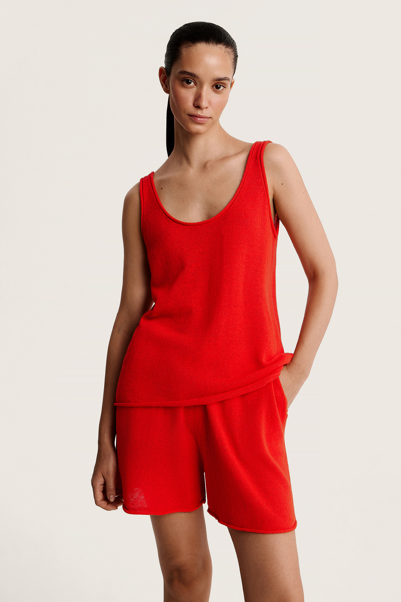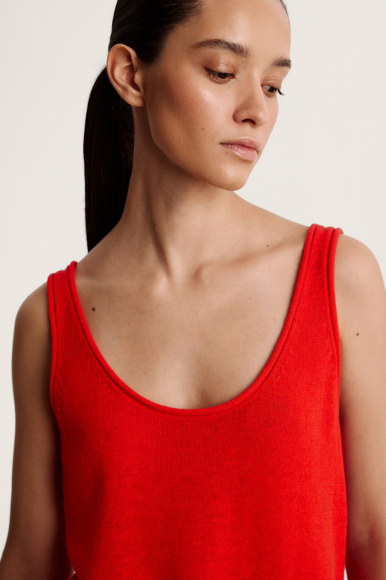 Топ с глубоким вырезом изо льна и хлопка