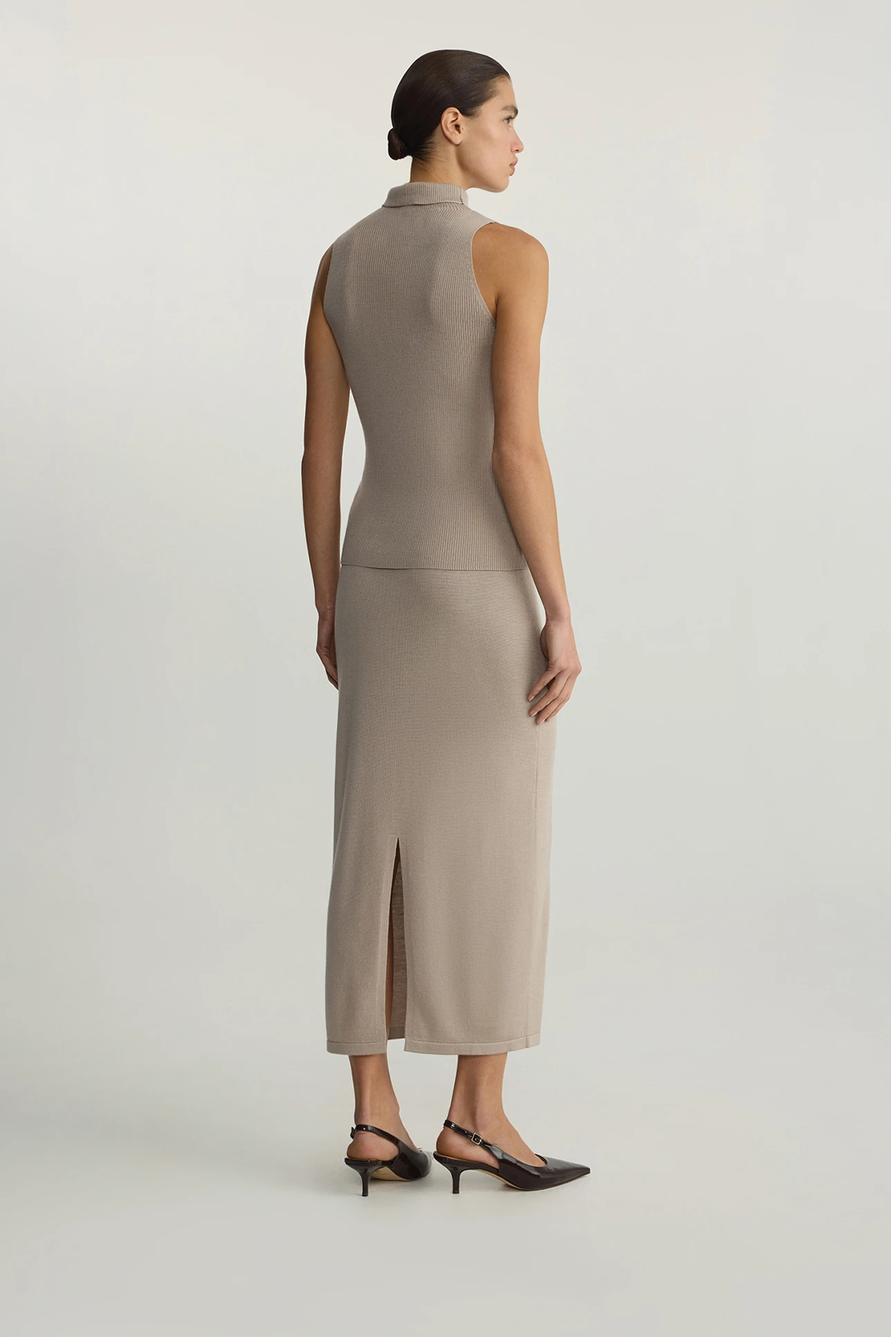Топ-халтер из шерсти мериноса бежевого цвета