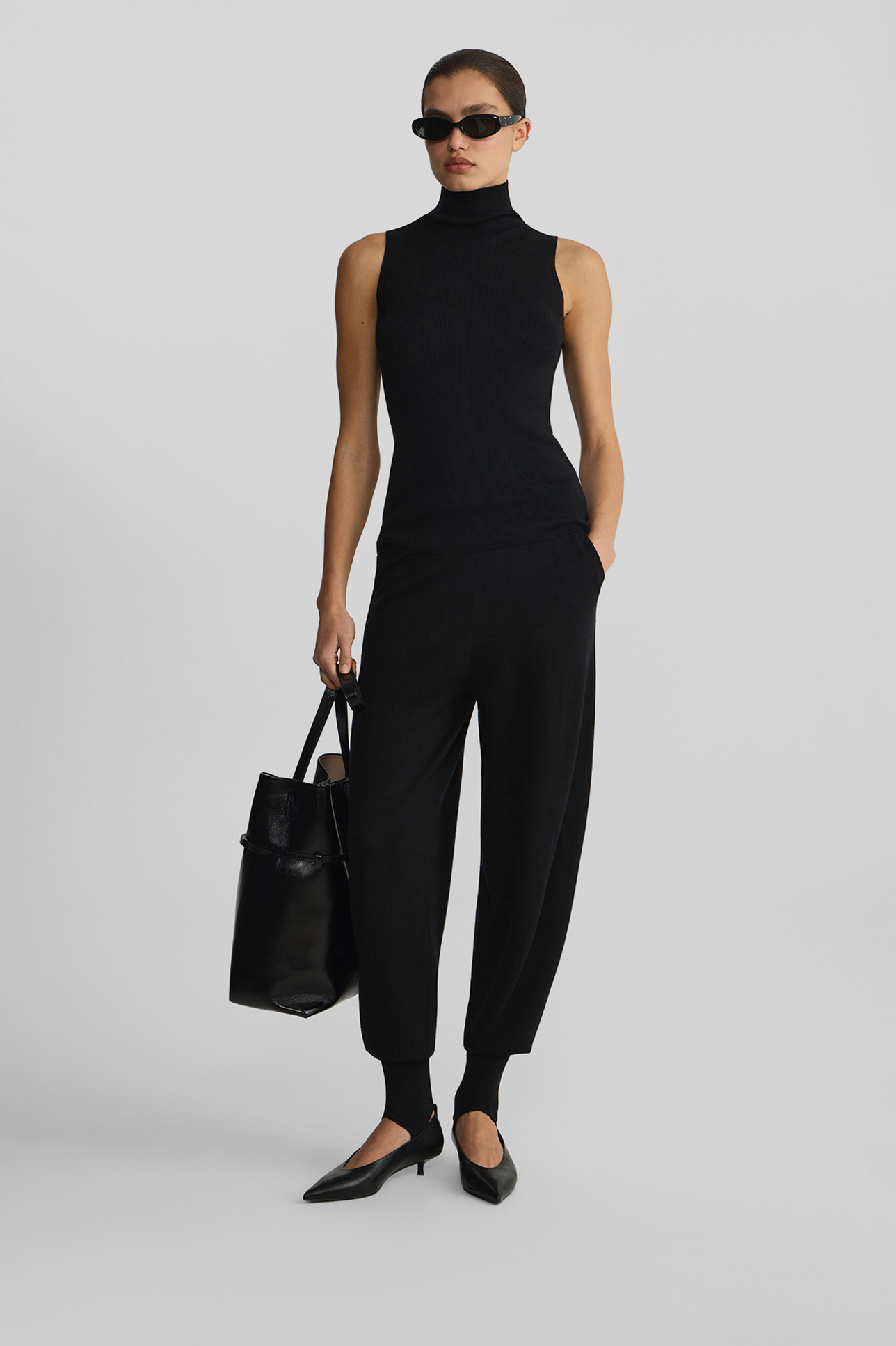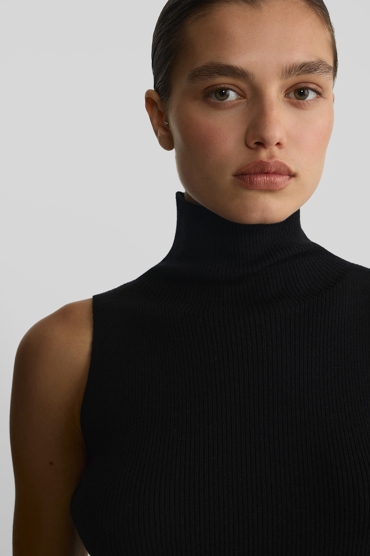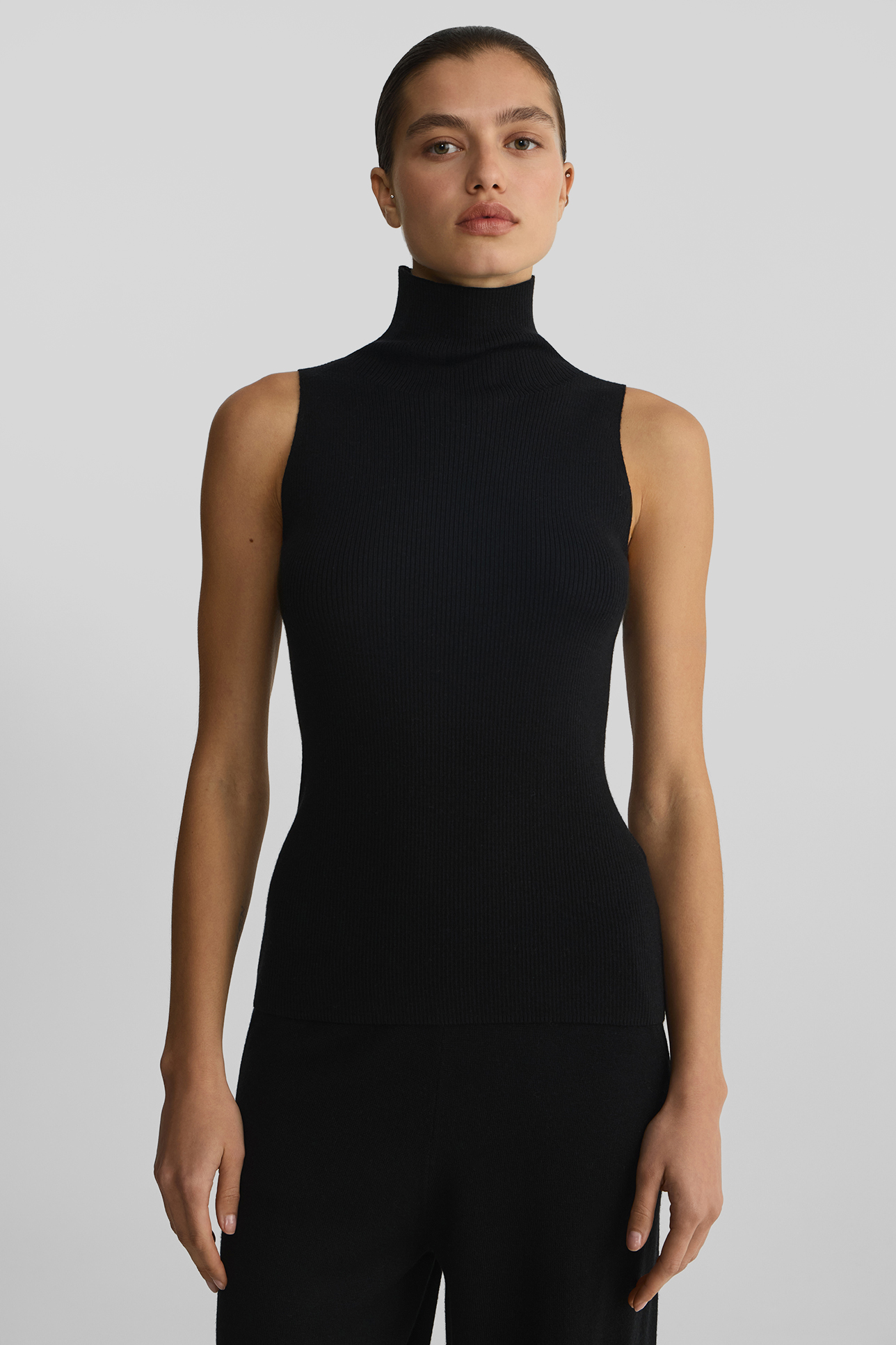 Топ-халтер из шерсти мериноса черного цвета