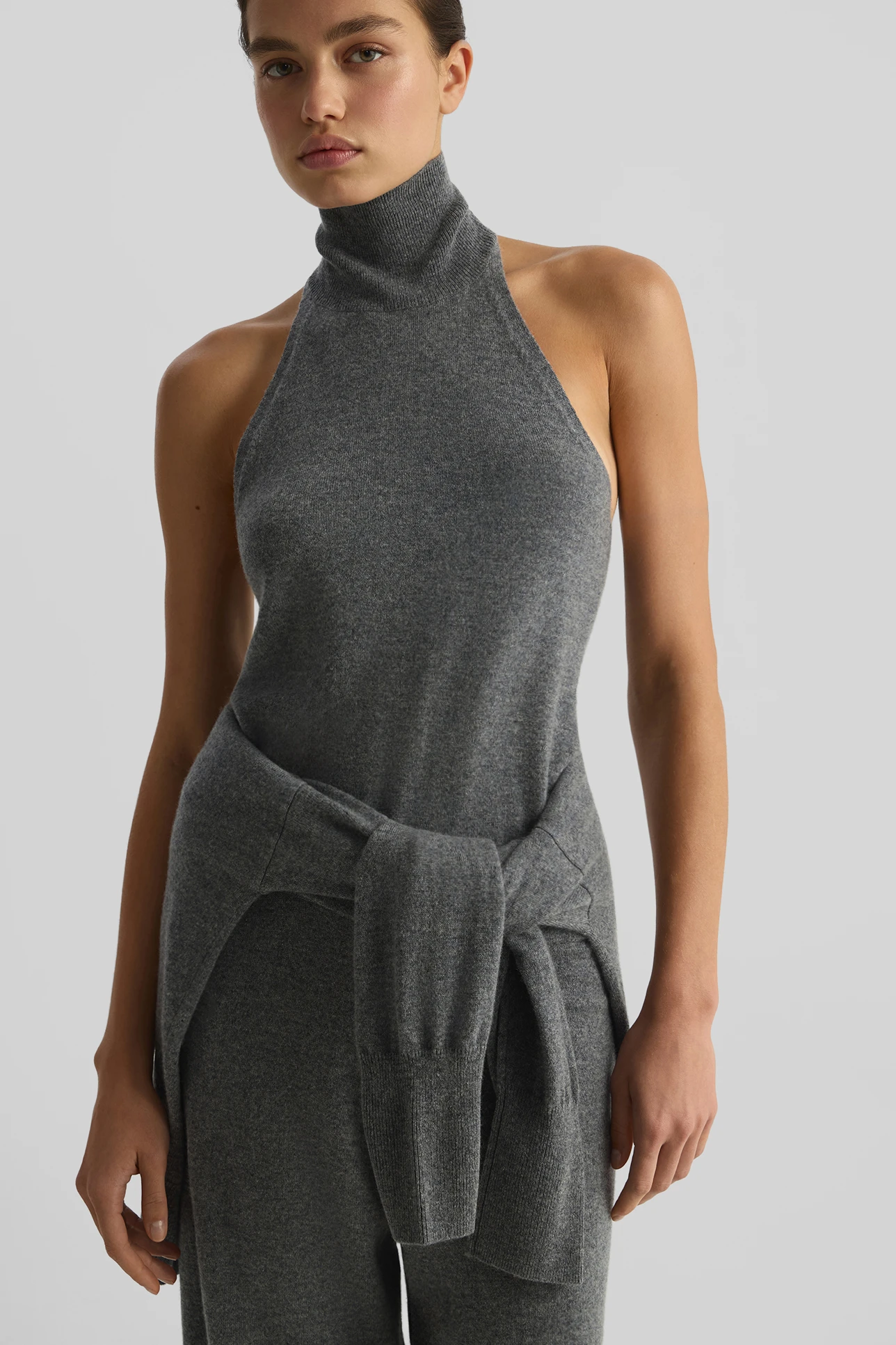 Топ-халтер из кашемира серого цвета