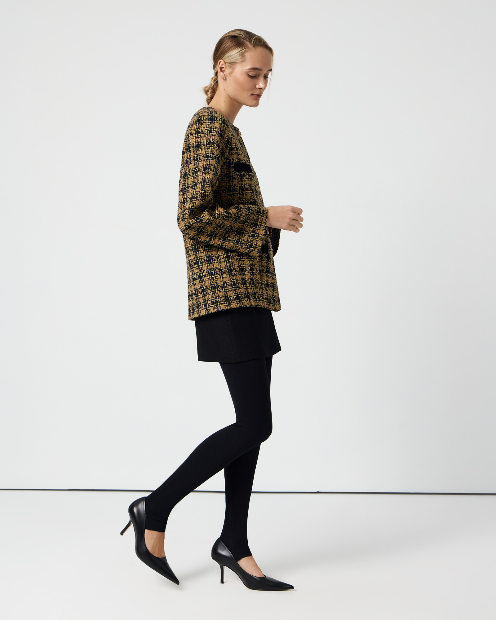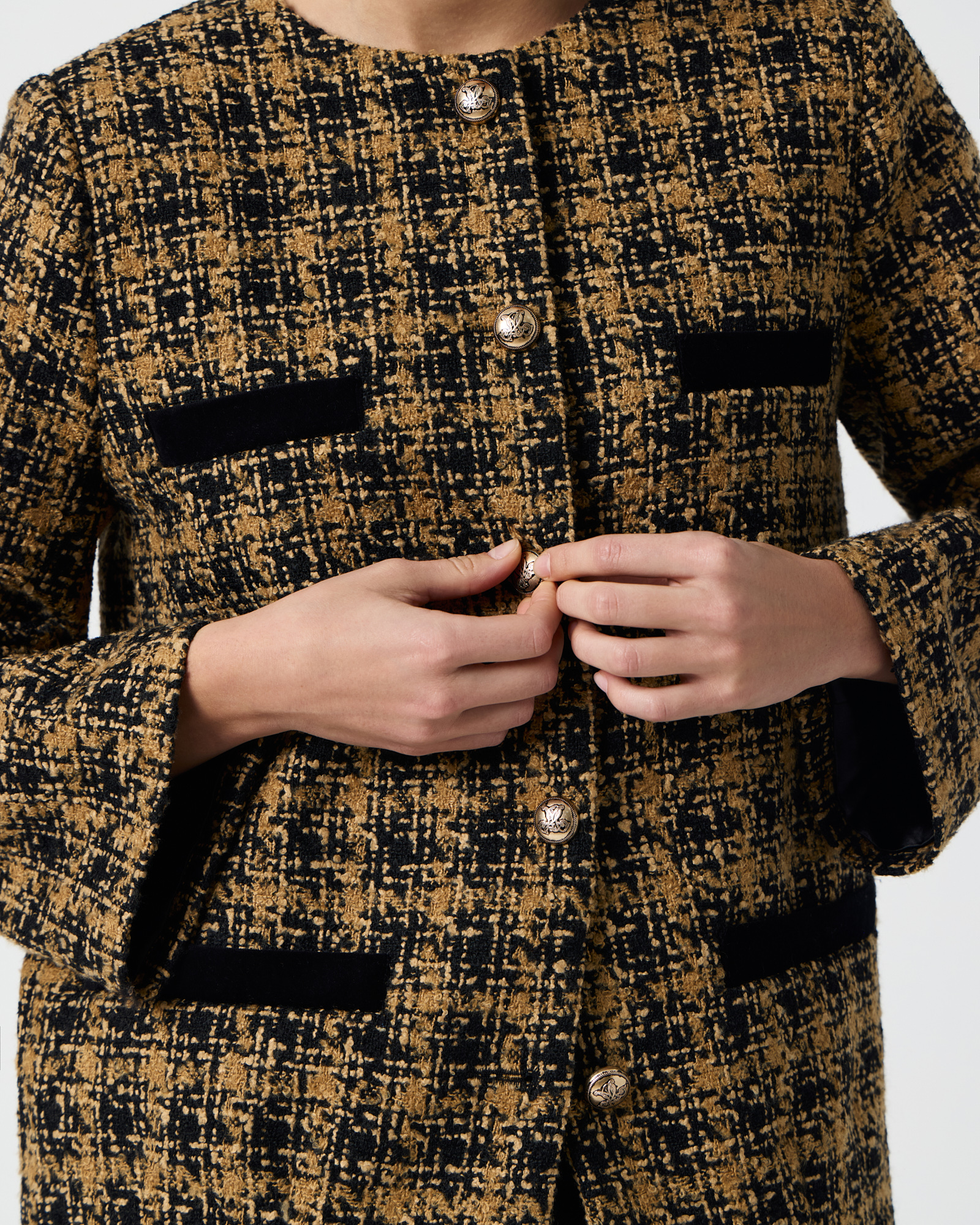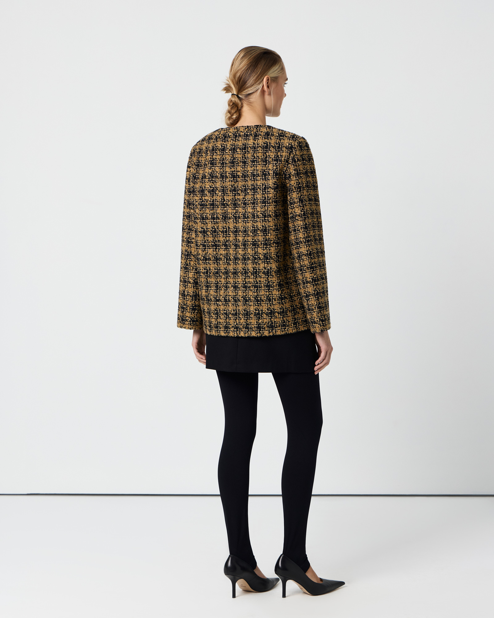 Удлиненный твидовый жакет горчичного цвета