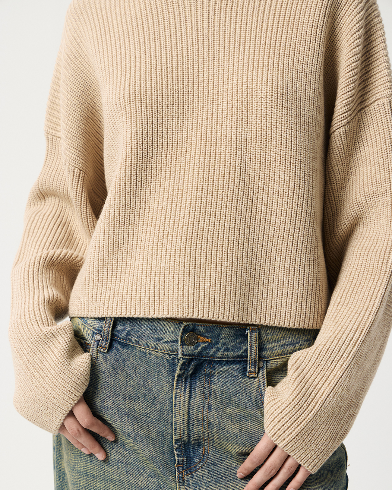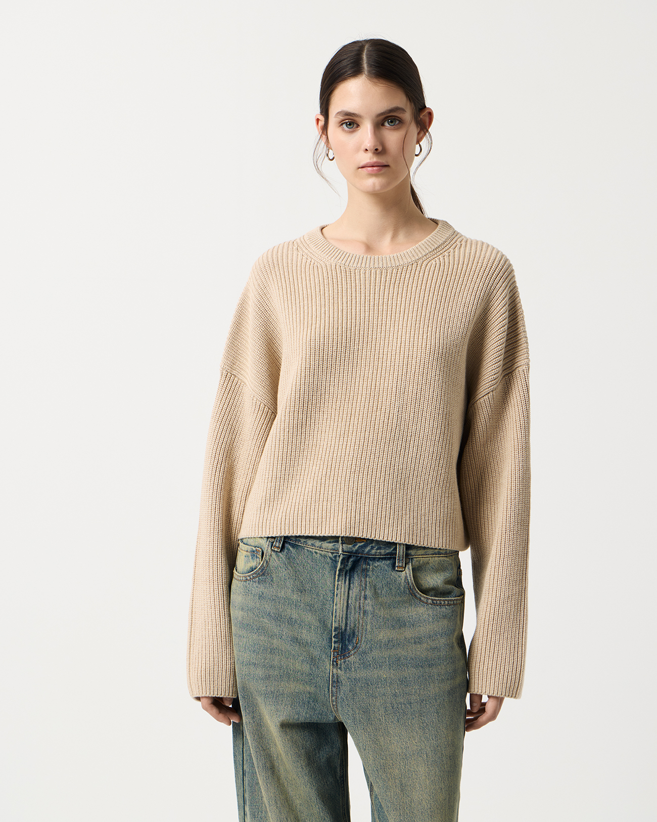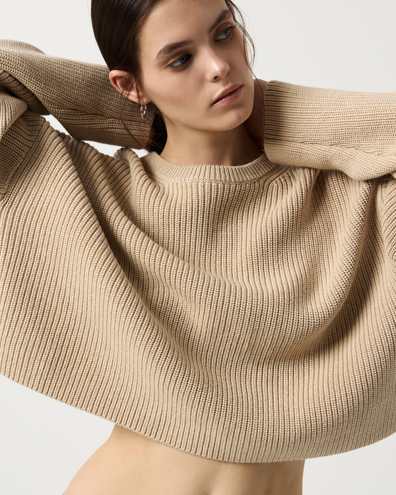 Укороченный джемпер оверсайз бежевого цвета