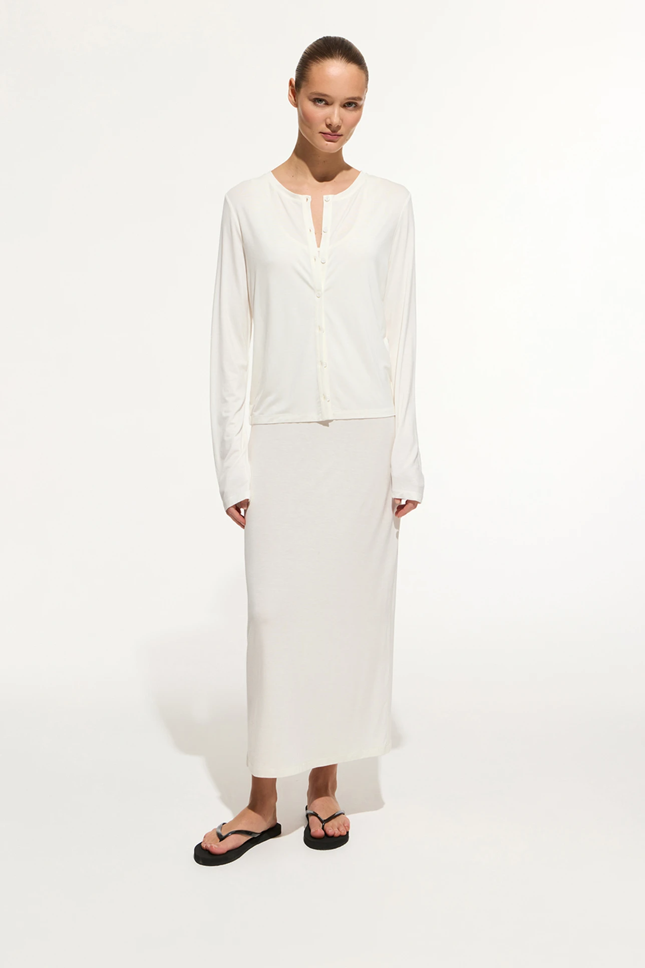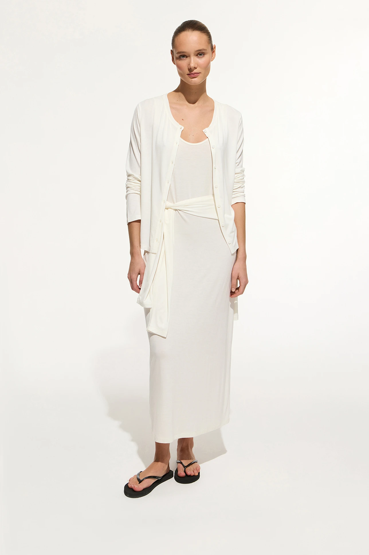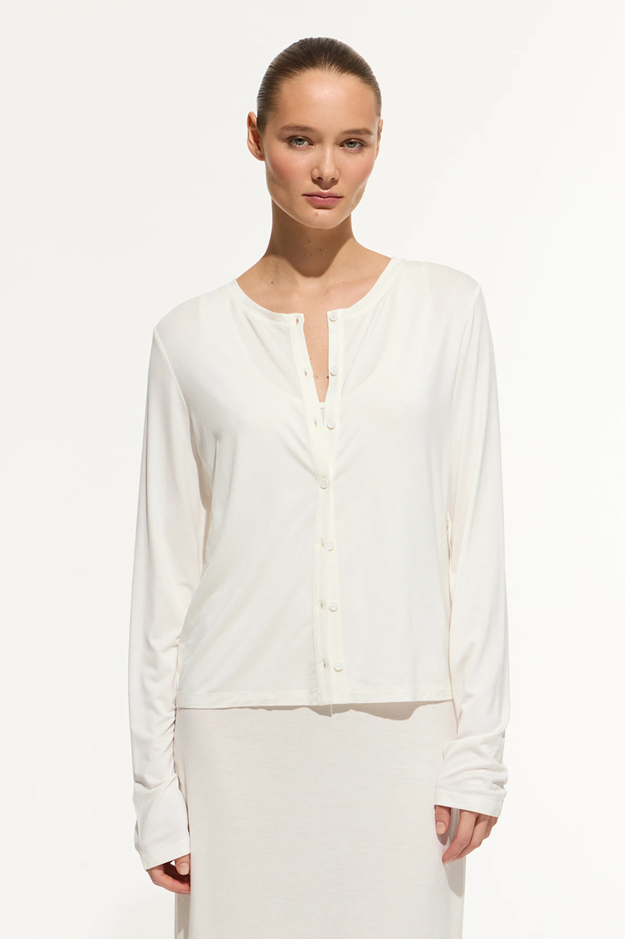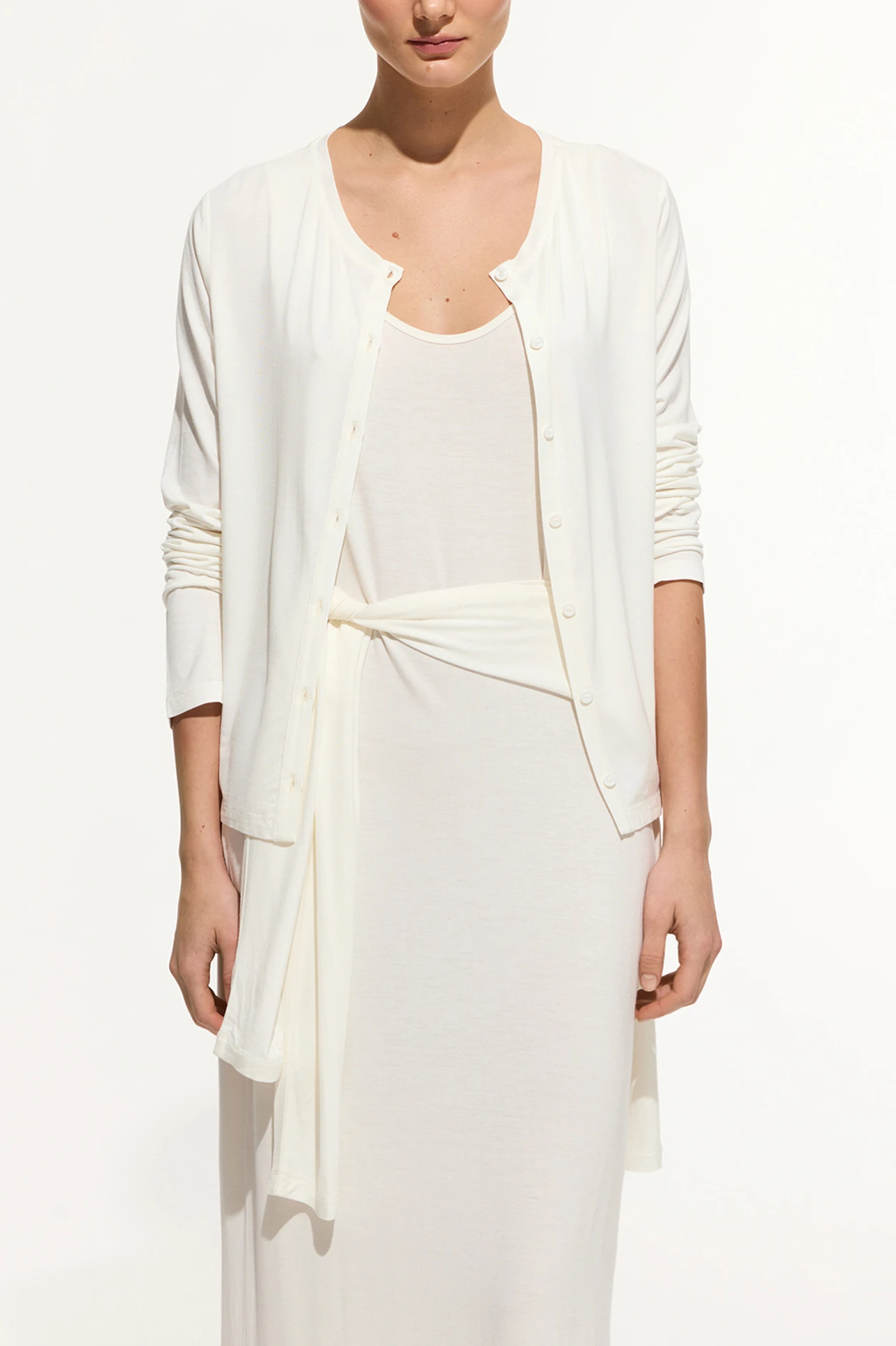 Укороченный кардиган из тонкого трикотажа молочного цвета