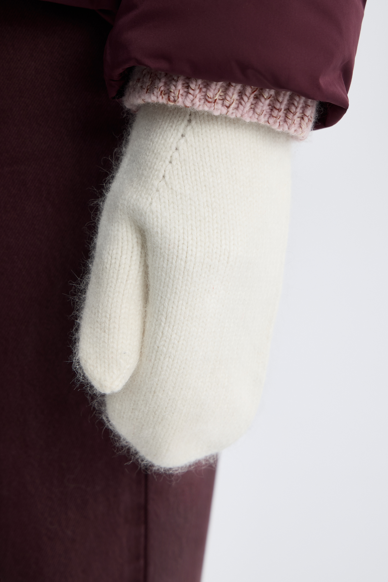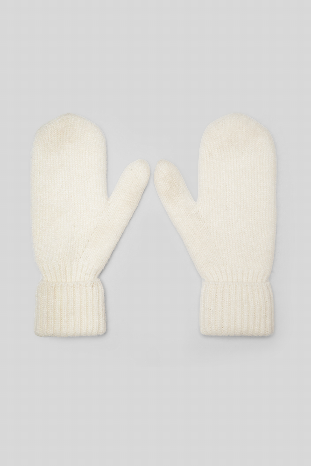 Варежки с шерстью енота молочного цвета