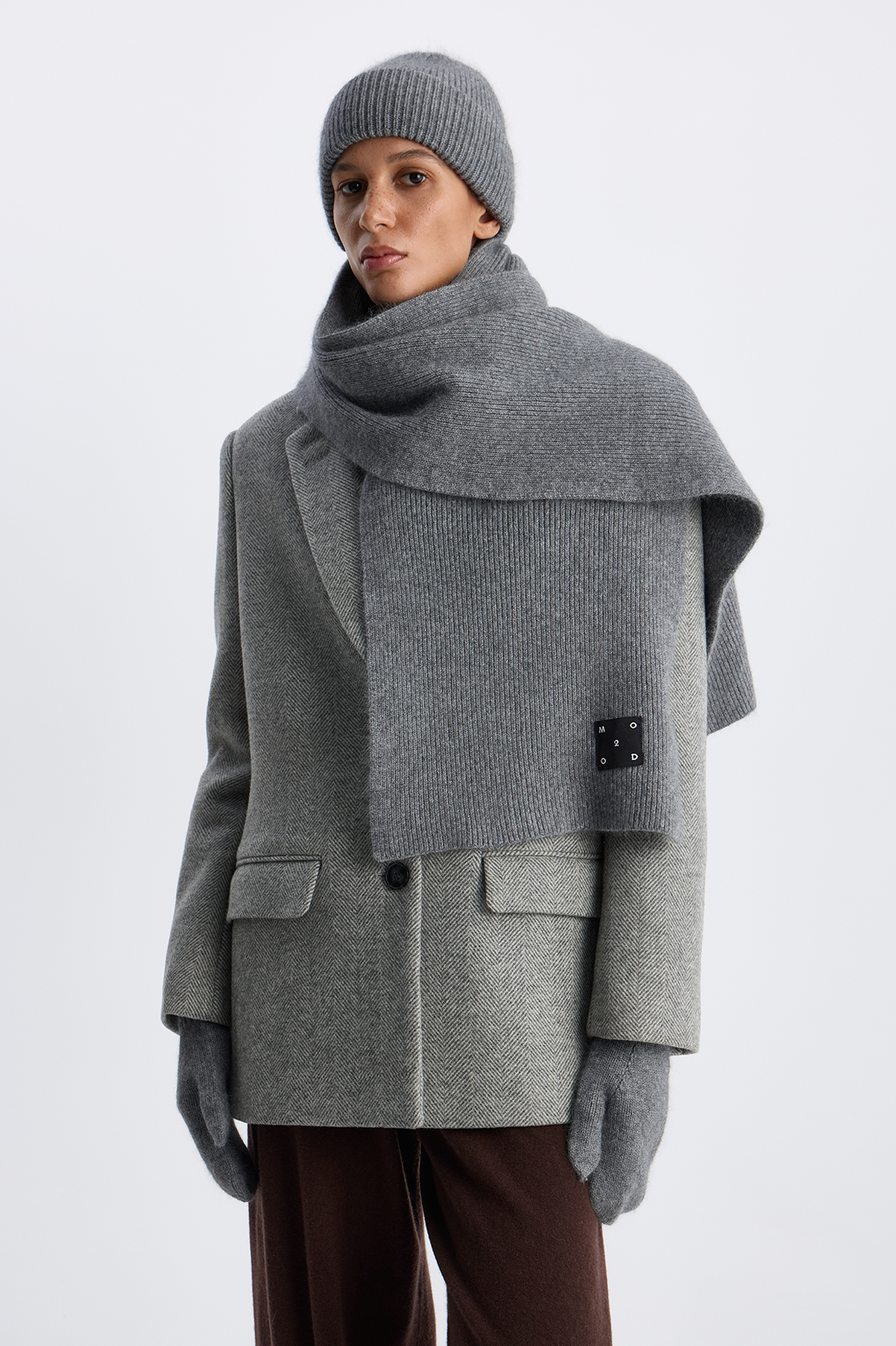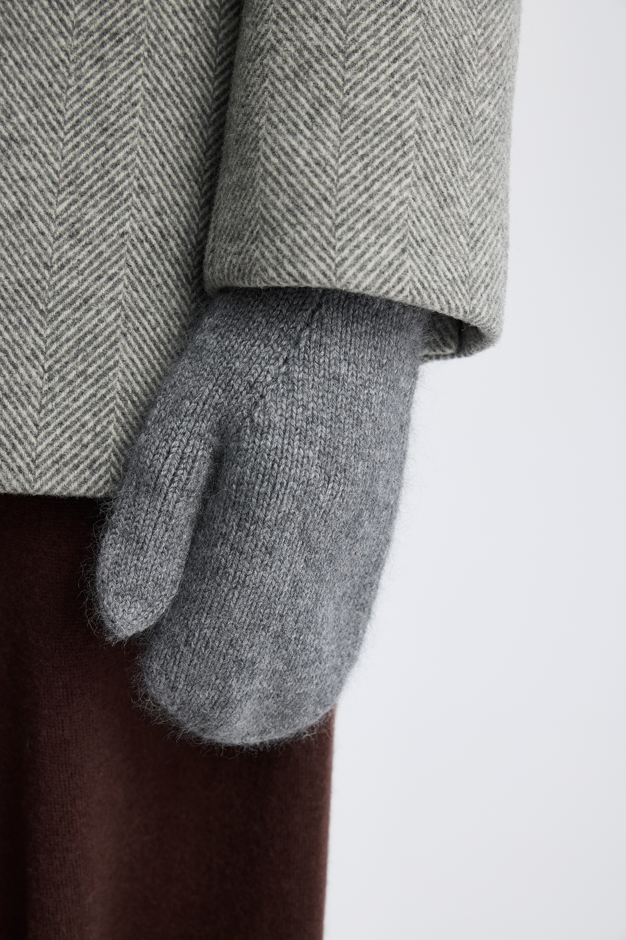 Варежки с шерстью енота серого цвета