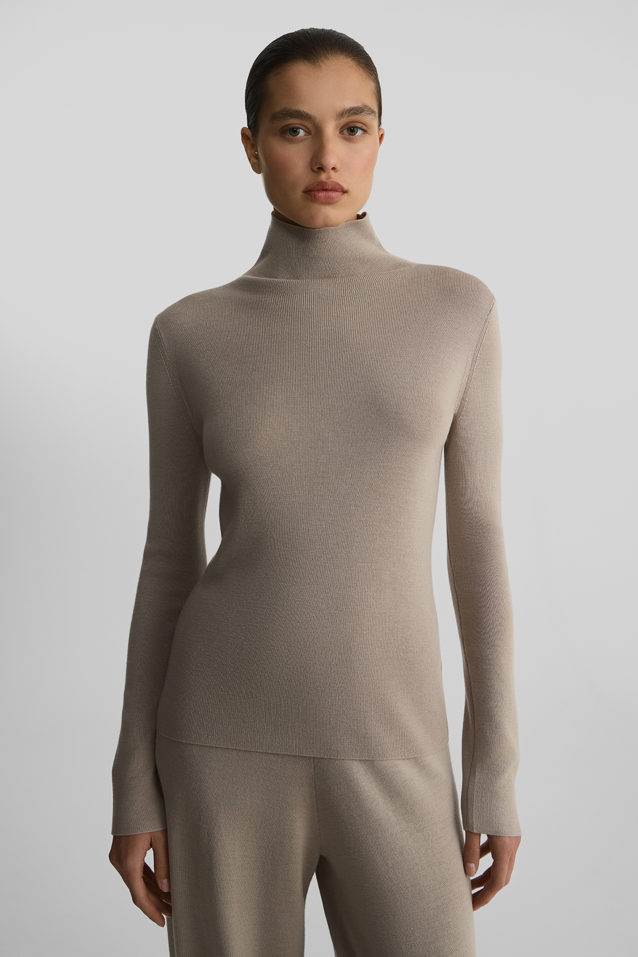 Водолазка из шерсти мериноса бежевого цвета