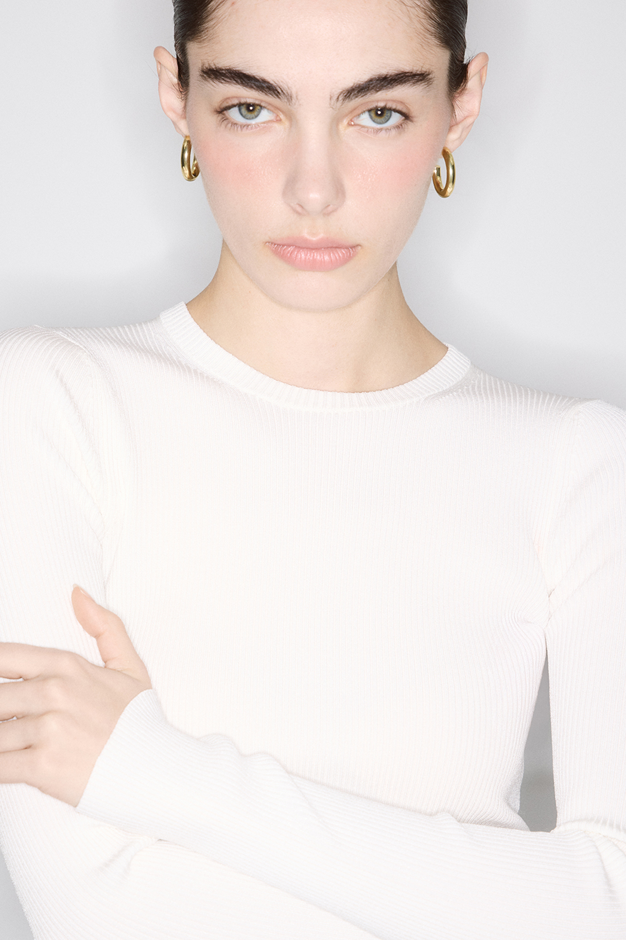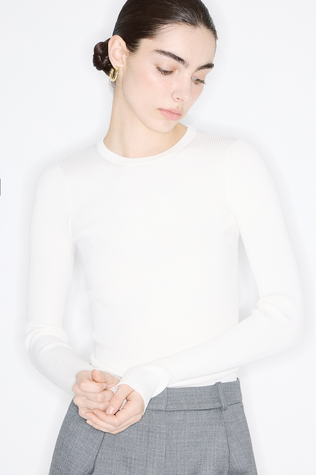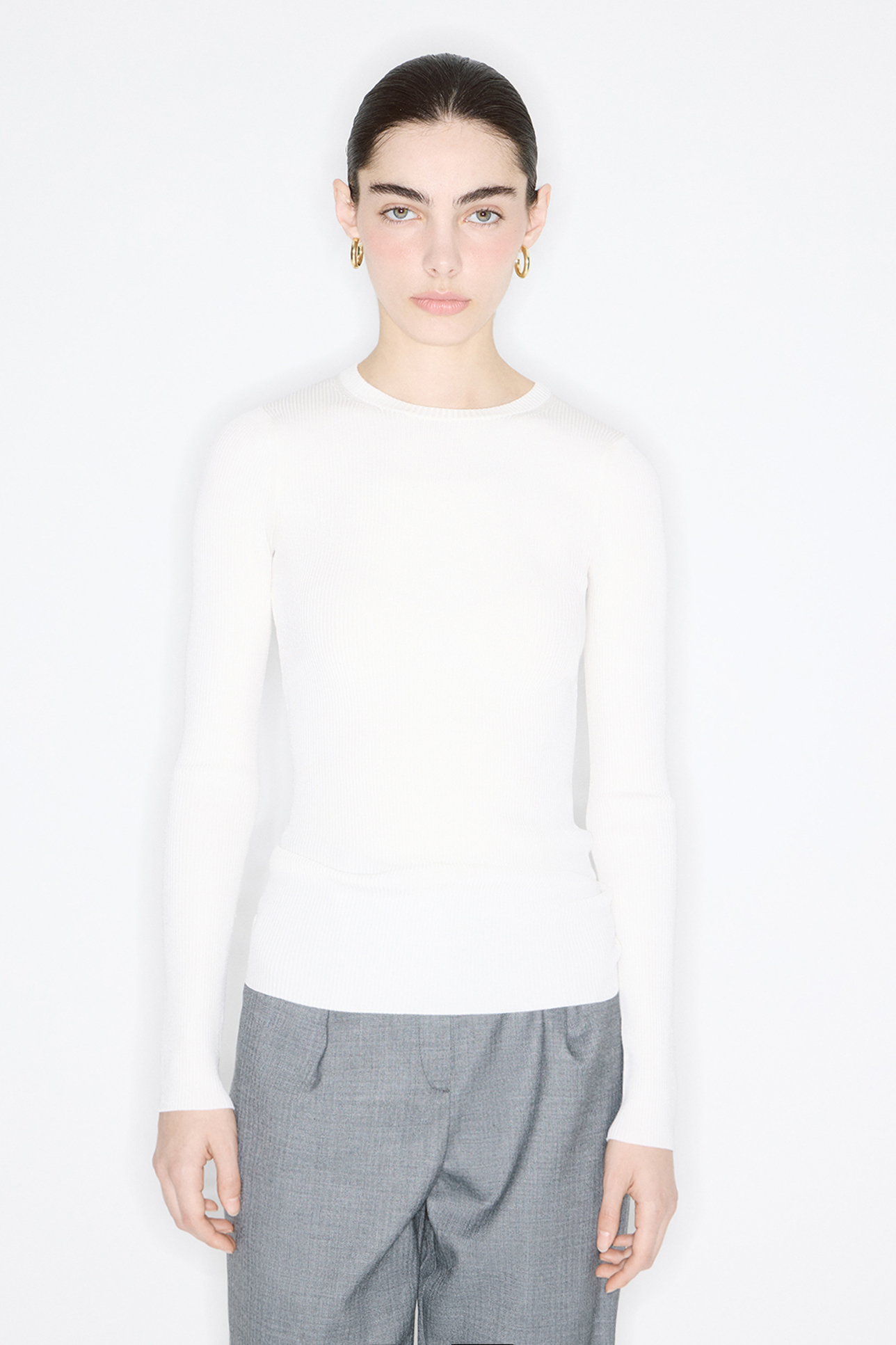 Вязаный прилегающий джемпер молочного цвета