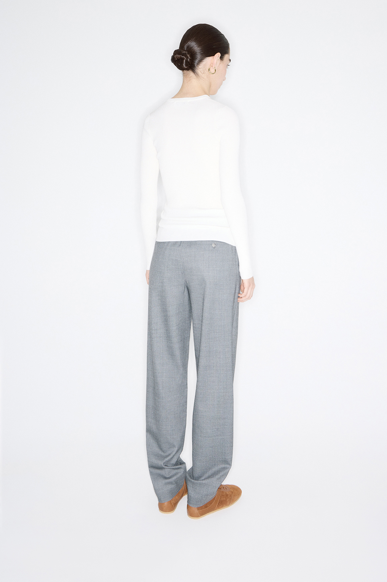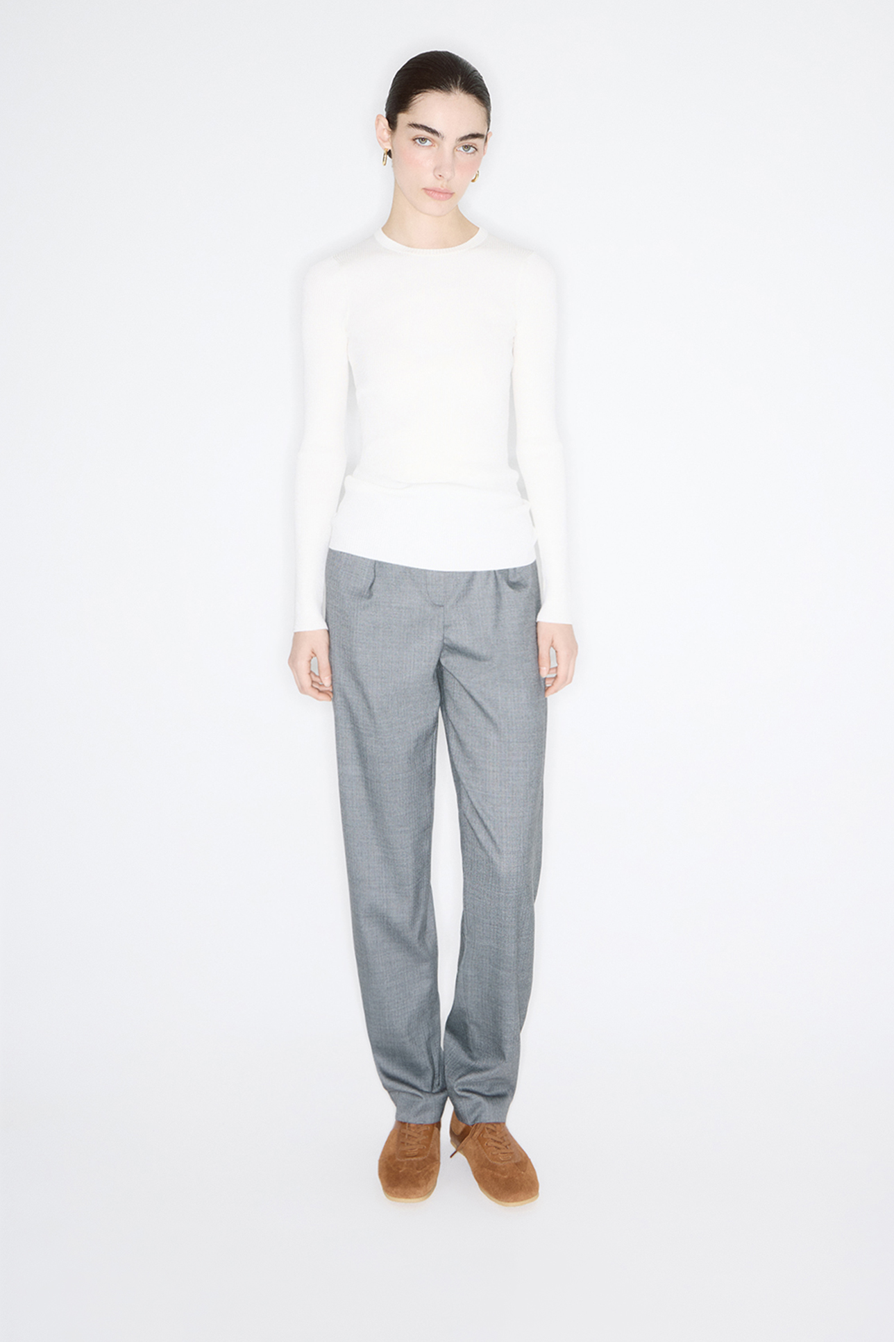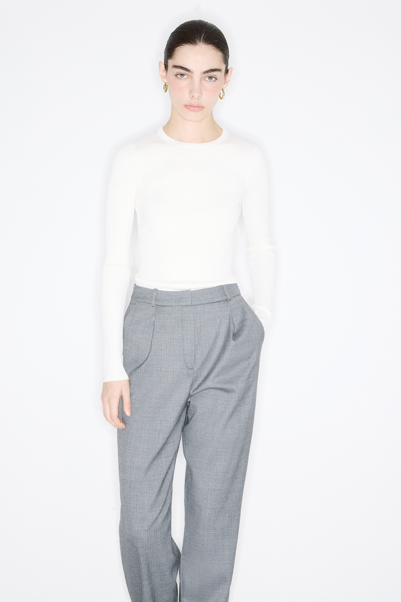 Вязаный прилегающий джемпер молочного цвета