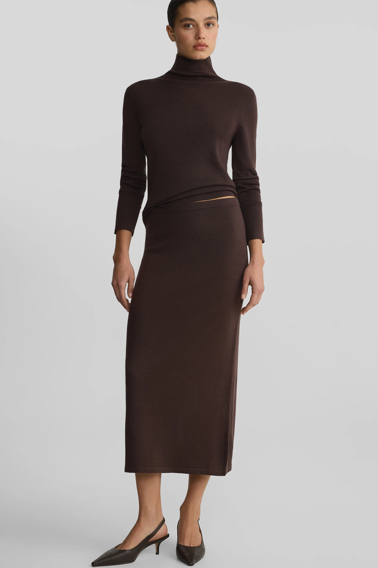 Юбка из шерсти мериноса шоколадного цвета