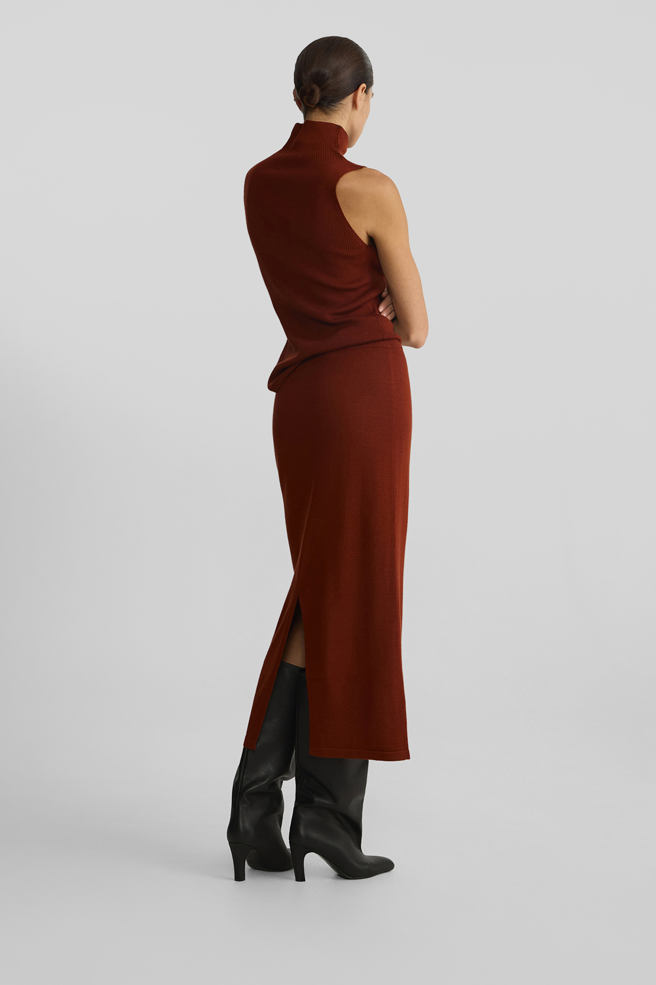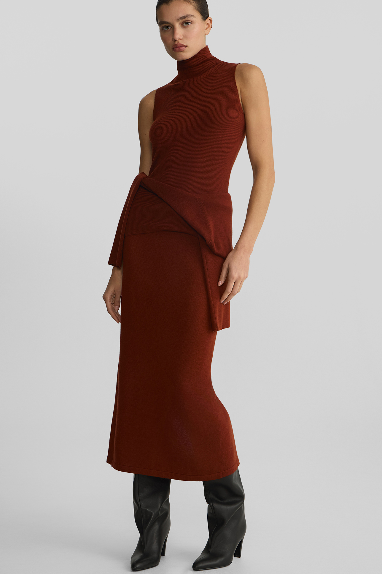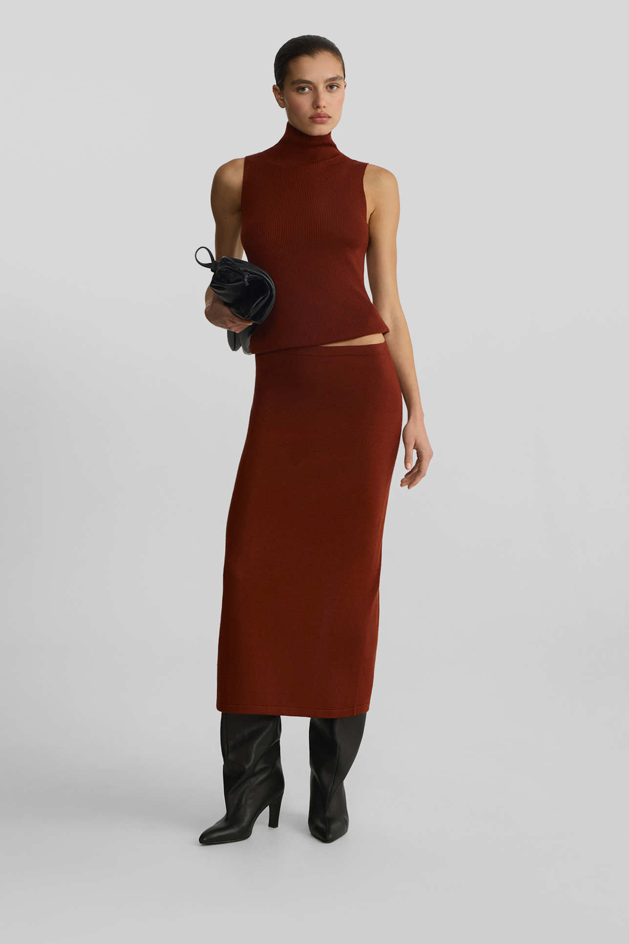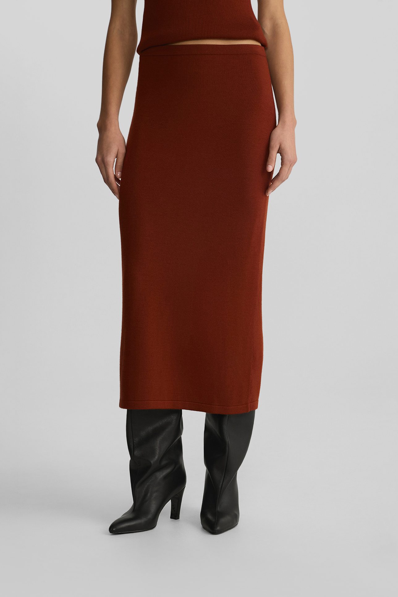 Юбка из шерсти мериноса терракотового цвета