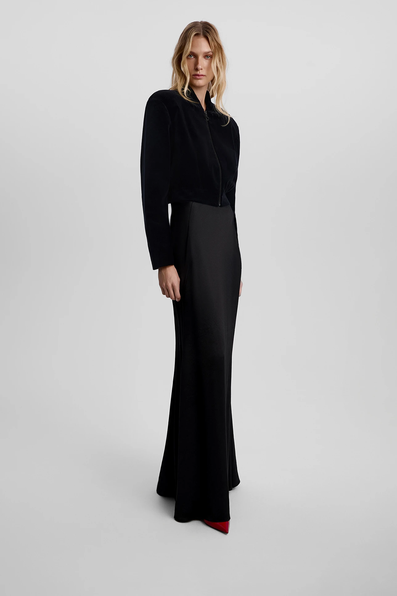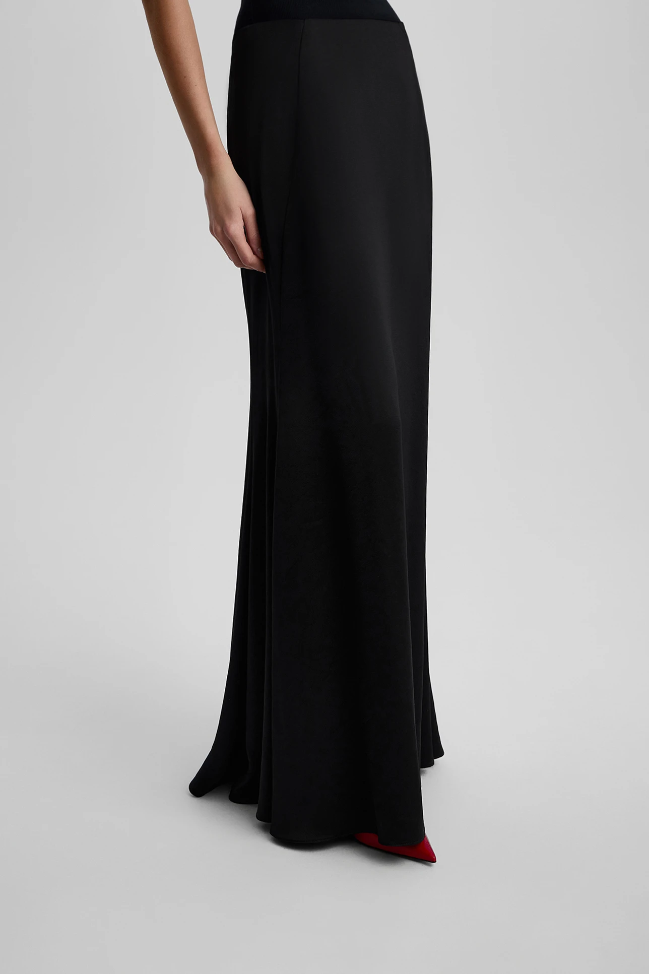 Юбка миди из атласной ткани черного цвета