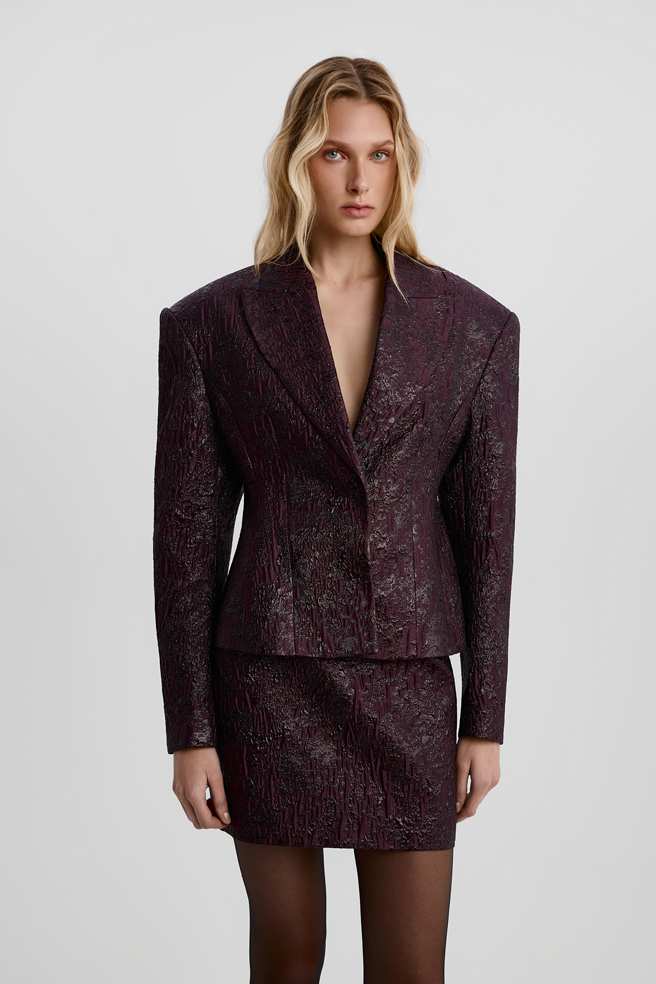 Юбка мини из фактурной ткани фиолетового цвета