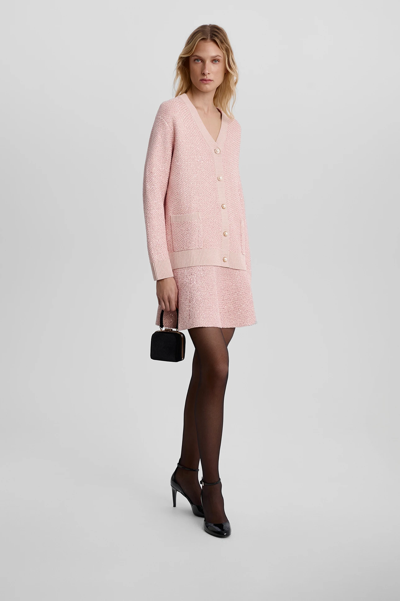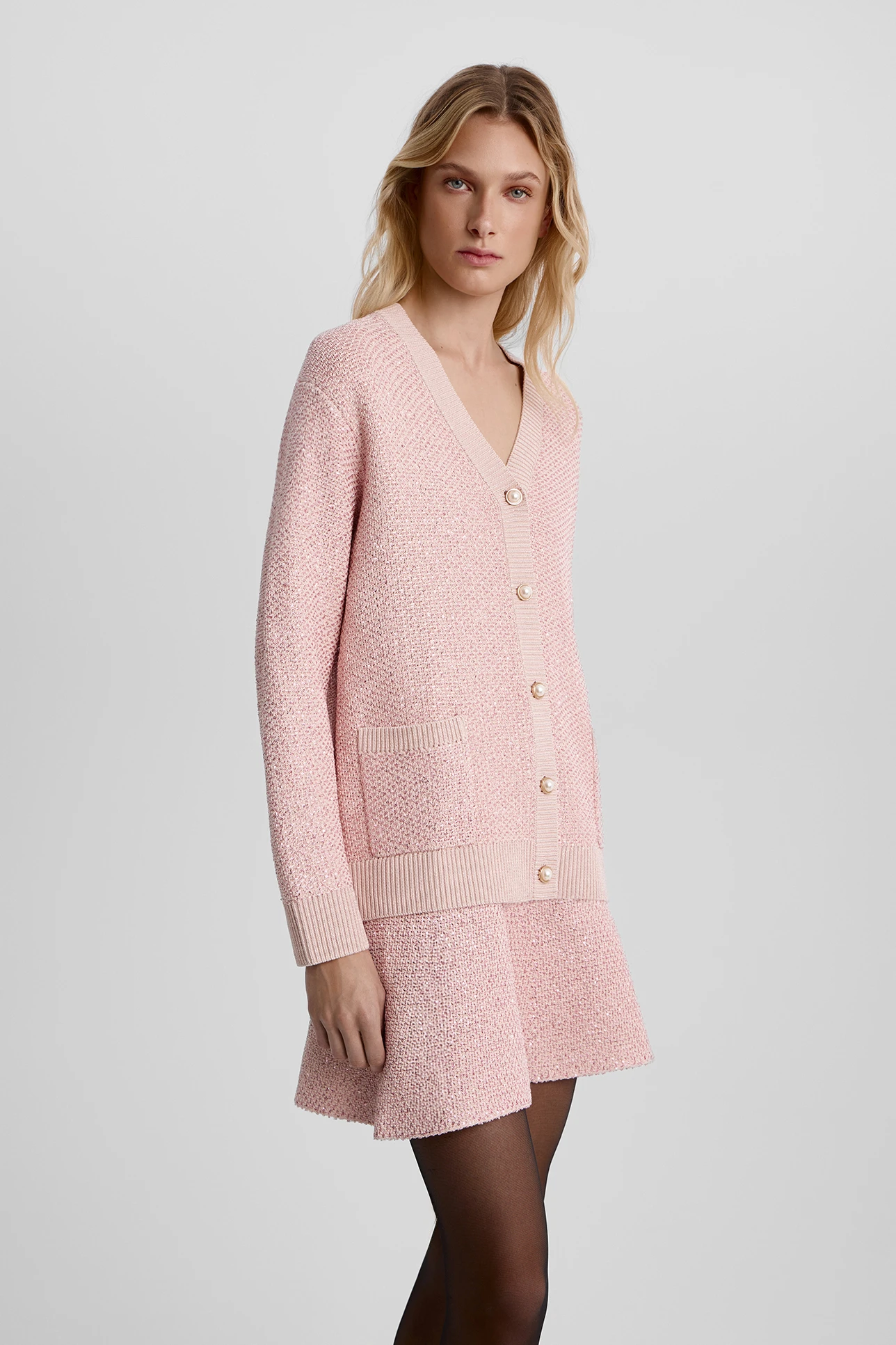 Юбка мини с пайетками светло-розового цвета