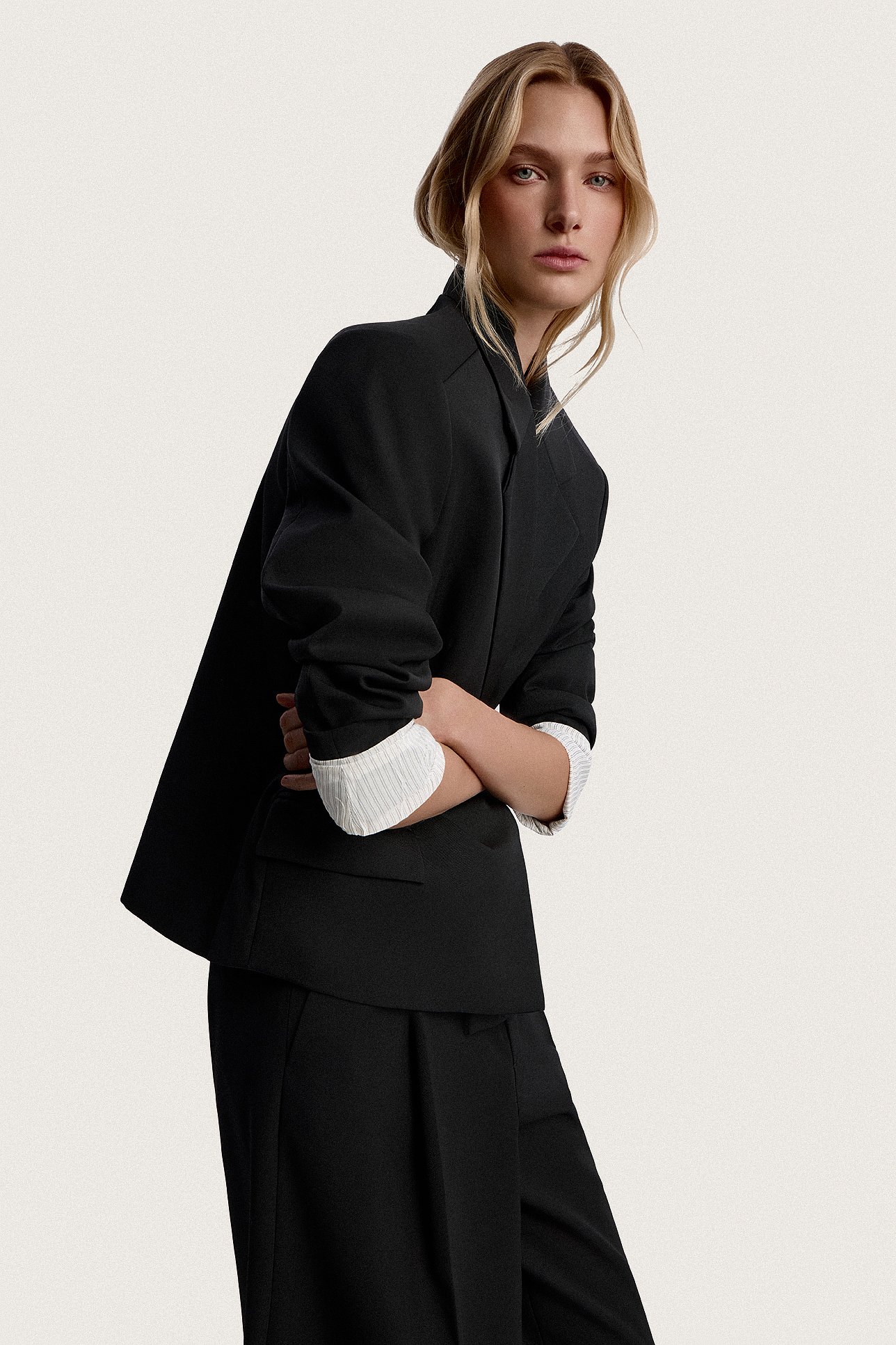 Жакет полушерстяной с акцентными плечами