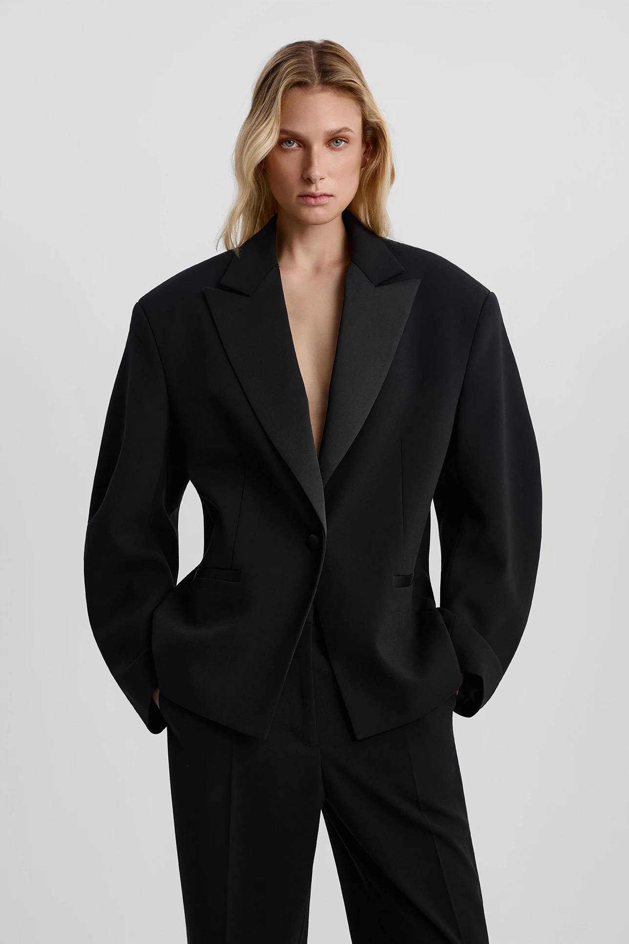 Жакет с атласными лацканами черного цвета