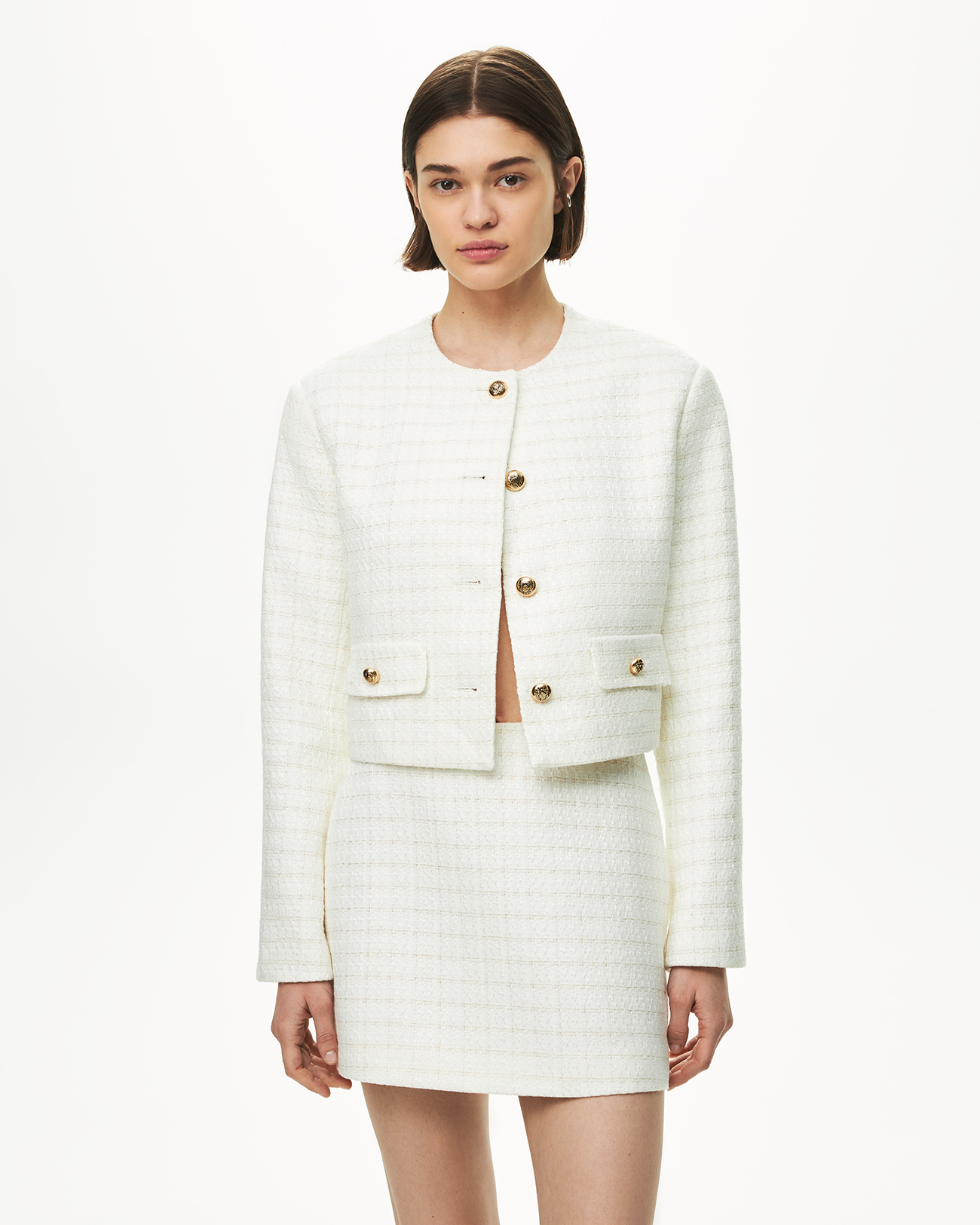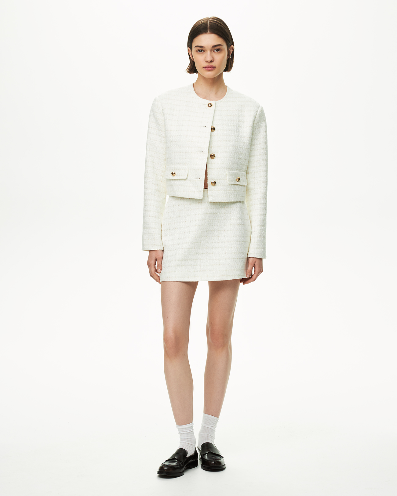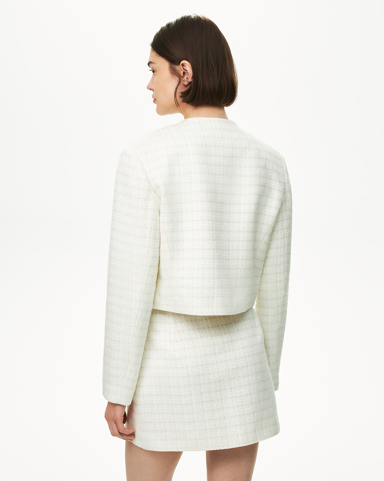 Жакет укороченный из твида молочного цвета